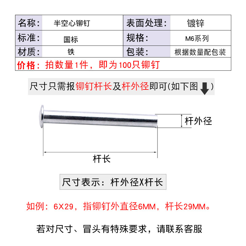 6-миллиметровая половина пустого сердца Железное заклеки Большую плоскую головку вокруг головы и плоская головка, плоская головка, переполненная гвоздь гвоздь.