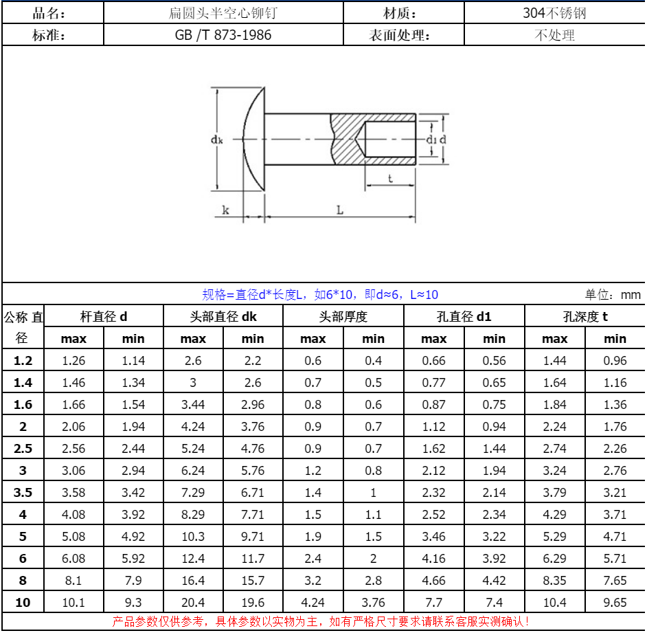M6 из нержавеющей стали 304 Сердце φ6 плоская головка середины воздушного ядра середина пустой гвоздь круглой головки*6/7/8-50GB873