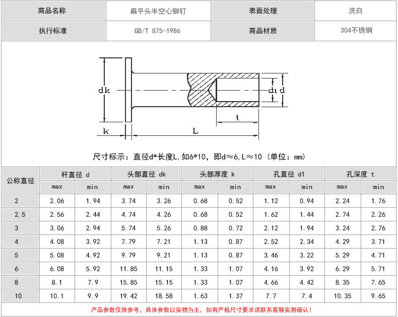 304 Платформа с нержавеющей стали Halway Heart Brivet M5M6 Halway Core Core Nail GB875