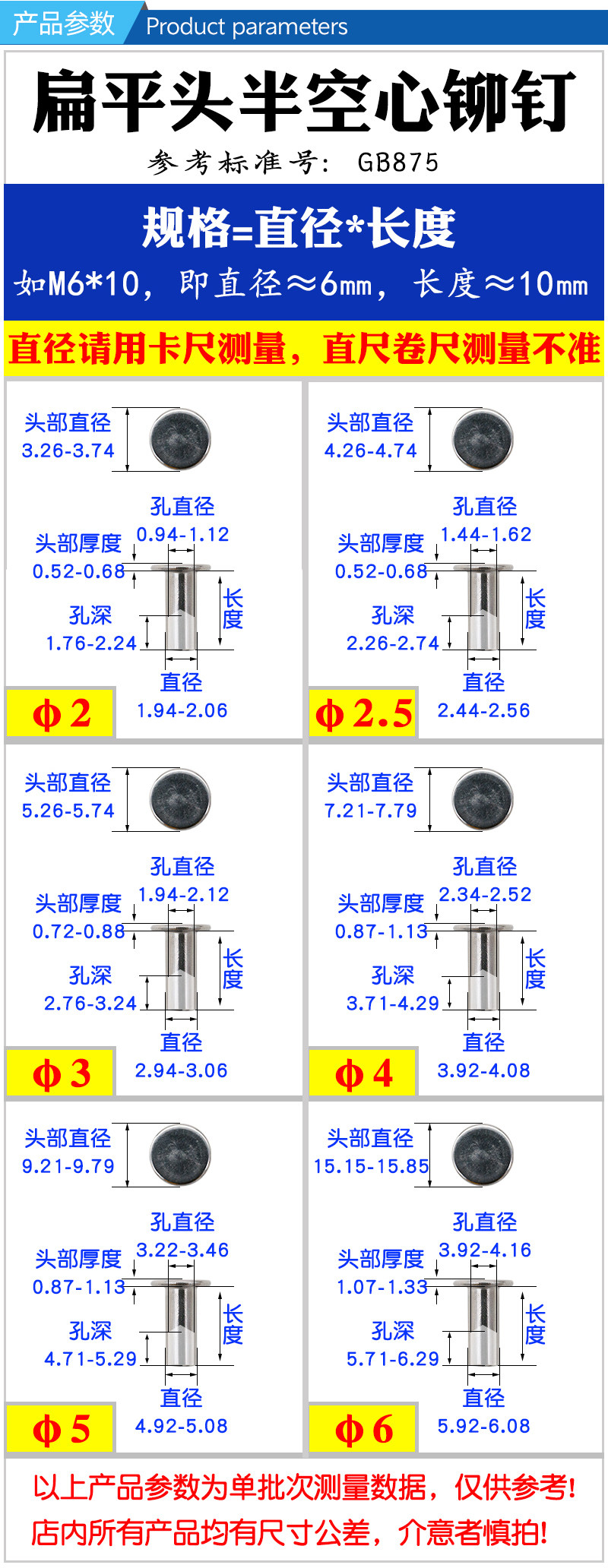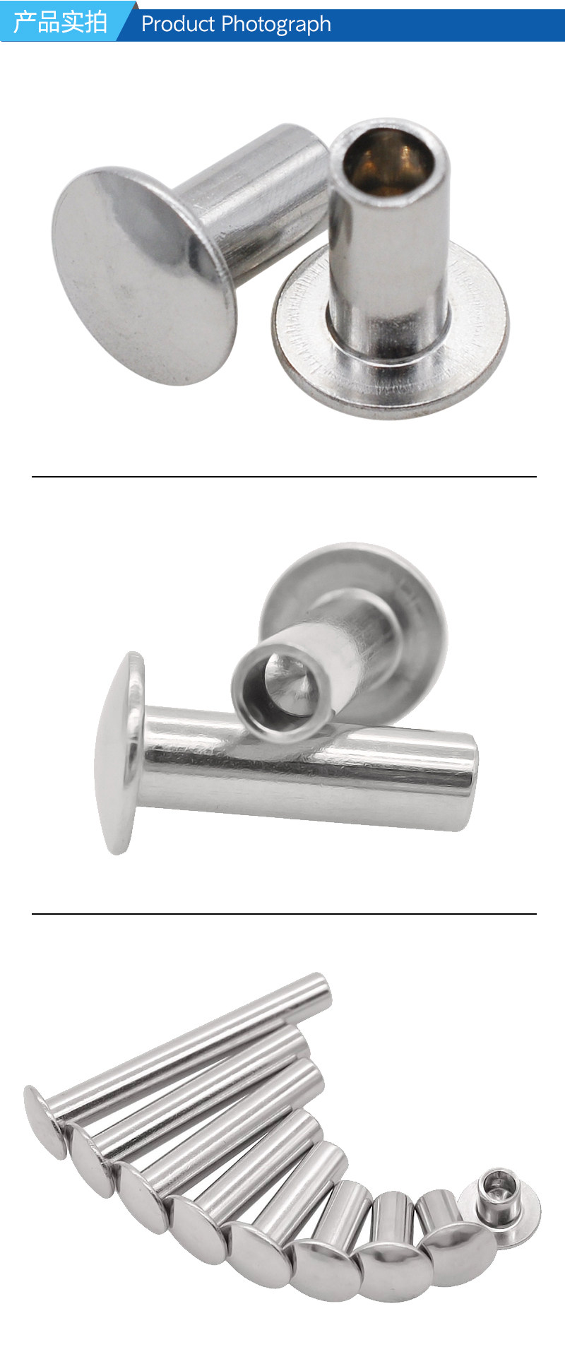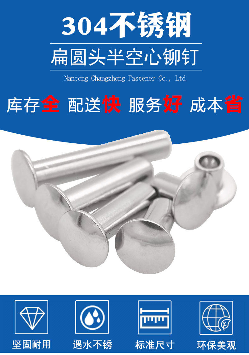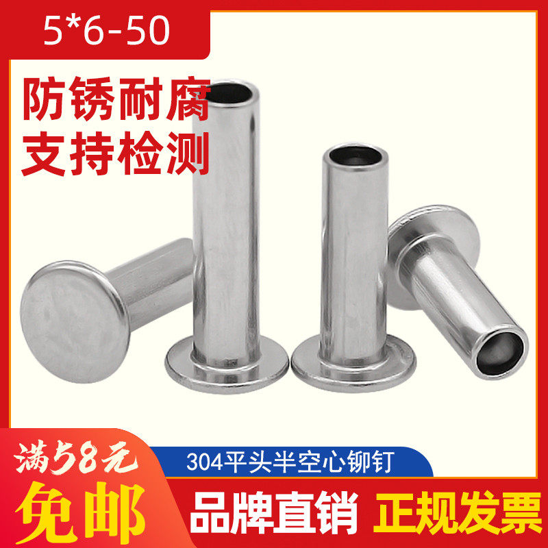 304 Плоская головка из нержавеющей стали полумазычная сердцевина 5*6-50 Плоская круглая головка в середине воздушного ядра Середина пусты