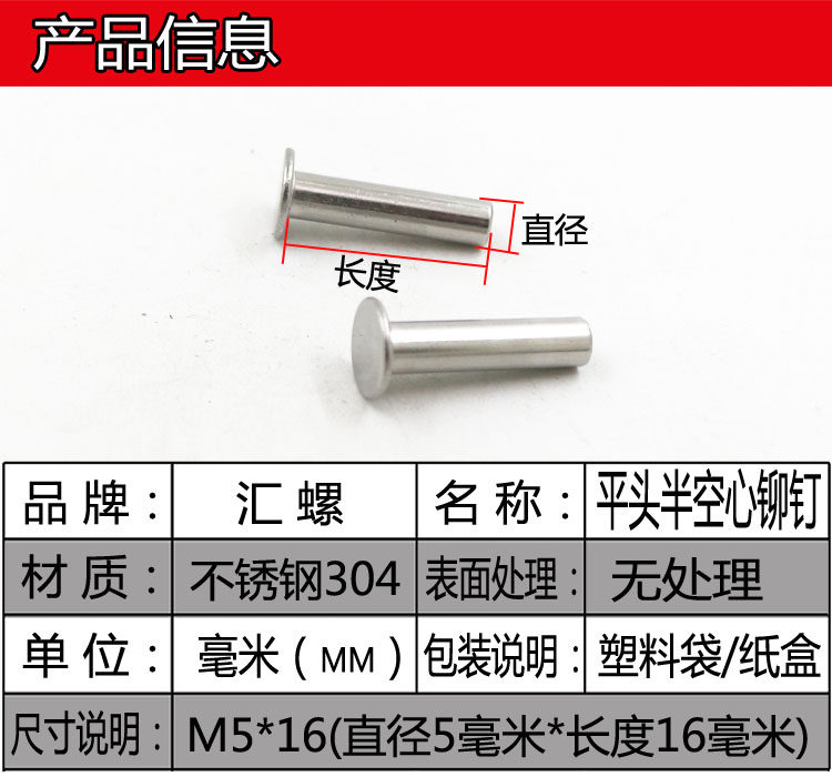 M2M2,5m3m4m5m6gb875 из нержавеющей стали 304 плоская головка Полая заклепка.