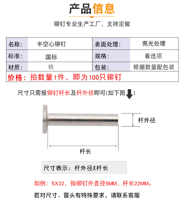 2,5 мм с плоской головкой половина -эмптиловая железо заклепывающие никелевые никелевые никелевые оцинкованные оцинкованные хвостовые размер.