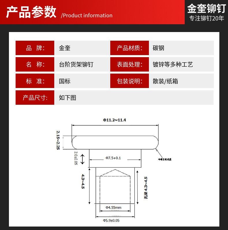 Производители Suzhou Jinkui поставляют M5 Steps Mid -empty Heart заклепки, отверстия обручи железные оцинкованные полки заклепки
