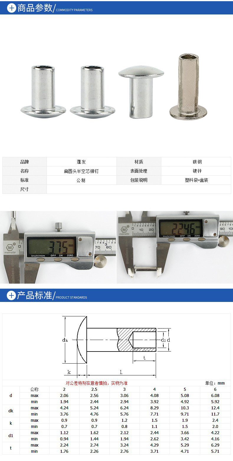 Железная оцинкованная полуйловая заклепка Оригинальная GB873 большая плоская голова железной заклепки никелированная полая полая заклепка.