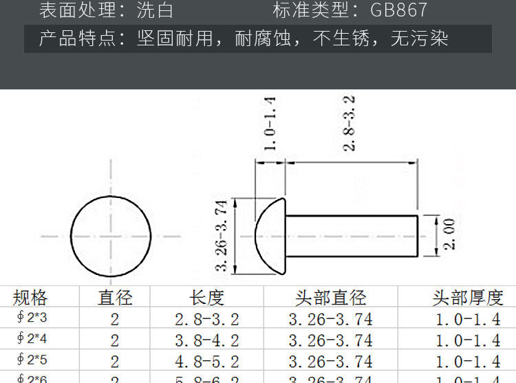 Гонгсин № 1 круглая головка заклепки gb867 304 Круглая головка из нержавеющей стали Сплошная заклепка M2 M2,5 Маленькая заклепка