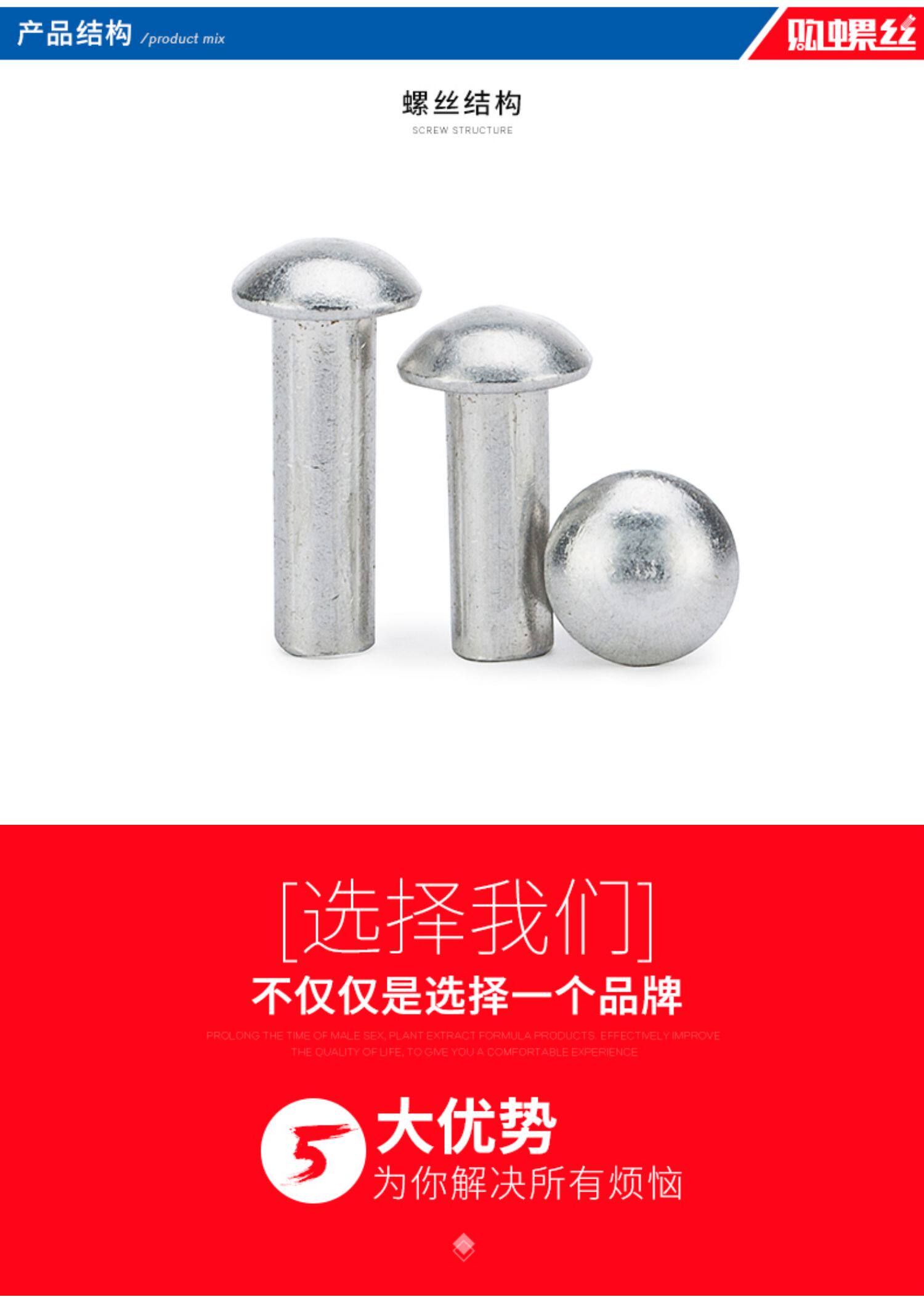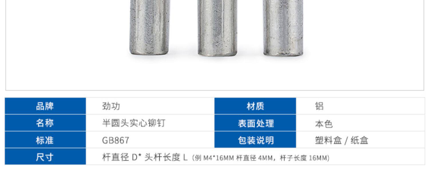 M2-M3M4M6 СЕМЕННАЯ СЕДНАЯ СЕДНАЯ Сплошная Алюминиевая заклепка GB867 Круглая головка заклепки