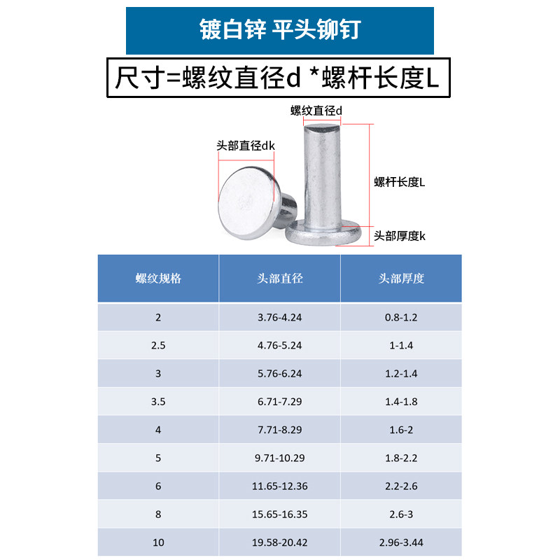 Оптовая цена железо оцинкованной плоской. Сплошная заклепка GB109 сбивающейся с плоской шляпой 卯 Ding Ding M2M2M3M4M5M6