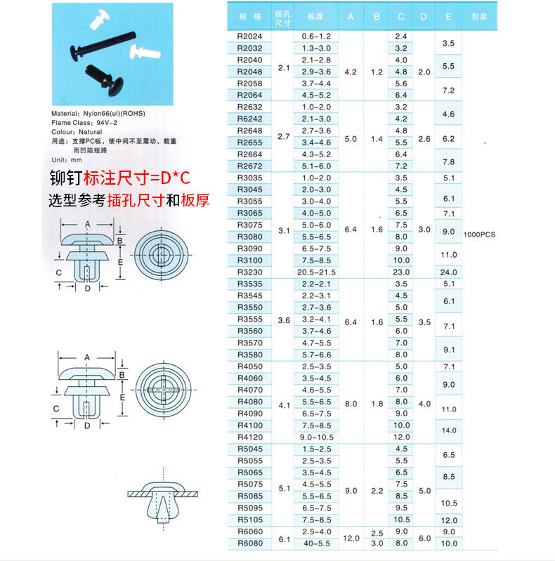 R3R4R5R6 Нейлоновая заклепка пластиковая r -обработка R R -обработка R Ride Ride Board Пластическая заклепка вентилятор L L