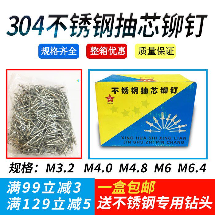 БЕСПЛАТНАЯ ДОСТАВКА 304 Накачанная накачка из нержавеющей стали заклепки заклеивание плоской головки M3.2M4m4.8m6m6.4