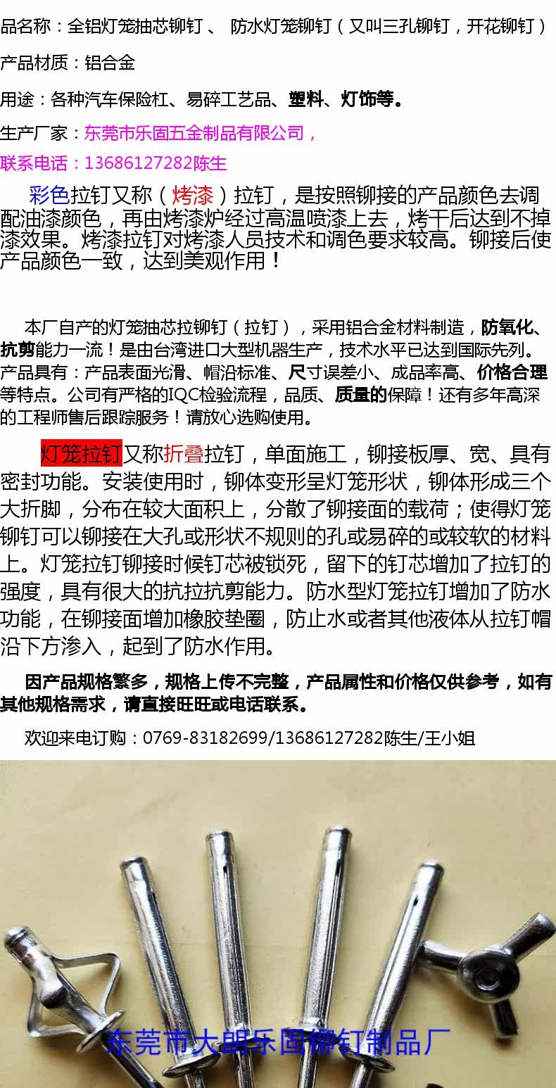 Все -алюминиевые расширенные фонари, перекачивающие заклепки, цветущие цветочные заклепки из трех -дыры тройной ширины заклепки 4,8*30