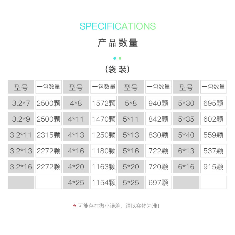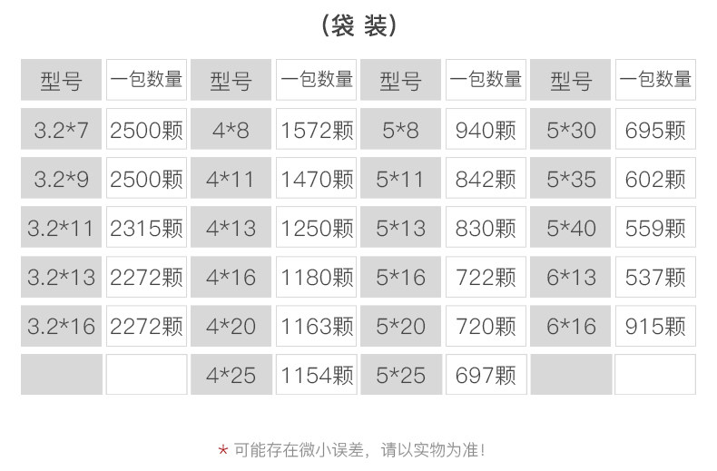 | Цвет: | 3.2*7 упаковка 5 фунтов (около 2500 штук), 3.2*9 упаковка 5 фунтов (около 2450 штук), 3.2*11 упаковывать 5 фунтов (около 2315 штук), 3.2*13 упаковки 5 фунтов (около 2272), 3.2*16 упаковка 5 фунтов (около 2272 штук), 4*8 упаковывать 5 фунтов (около 1572 штук), 4*10 упаковки 5 фунтов (около 1470 штук), 4*13 упаковки 5 фунтов (около 1250 штук), 4*16 упаковка 5 фунтов (около 1180 штук), 4*20 пакетов 5 фунтов (около 1163), 4*25 упаковки 5 фунтов (около 1054), 5*8 упаковывать 5 фунтов (около 940 штук), 5*10 упаковка 5 фунтов (около 842 штук), 5*13 упаковки 5 фунтов (около 830 штук), 5*16 упаковка 5 фунтов (около 722), 5*20 упаковок 5 фунтов (около 720 штук), 5*25 упаковка 5 фунтов (около 697), 5*30 упаковок 5 фунтов (около 695), 5*35 упаковка 5 фунтов (около 602), 5*40 упаковки 5 фунтов (около 559 штук), 6*13 упаковки 5 фунтов (около 537 штук), 6*16 упаковка 5 фунтов (около 537 штук), Большая шляпа 5*13 упаковки 5 фунтов (около 915), Большая шляпа 5*16 упаковка 5 фунтов (около 840), Большая белая шляпа 5*20 упаковка 5 фунтов |