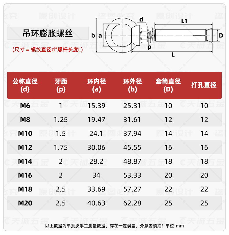 304/201 Расширение из нержавеющей стали Связанное винт Универсальный расширение подвеска подвеска подвесное кольцо M6M8M10M12