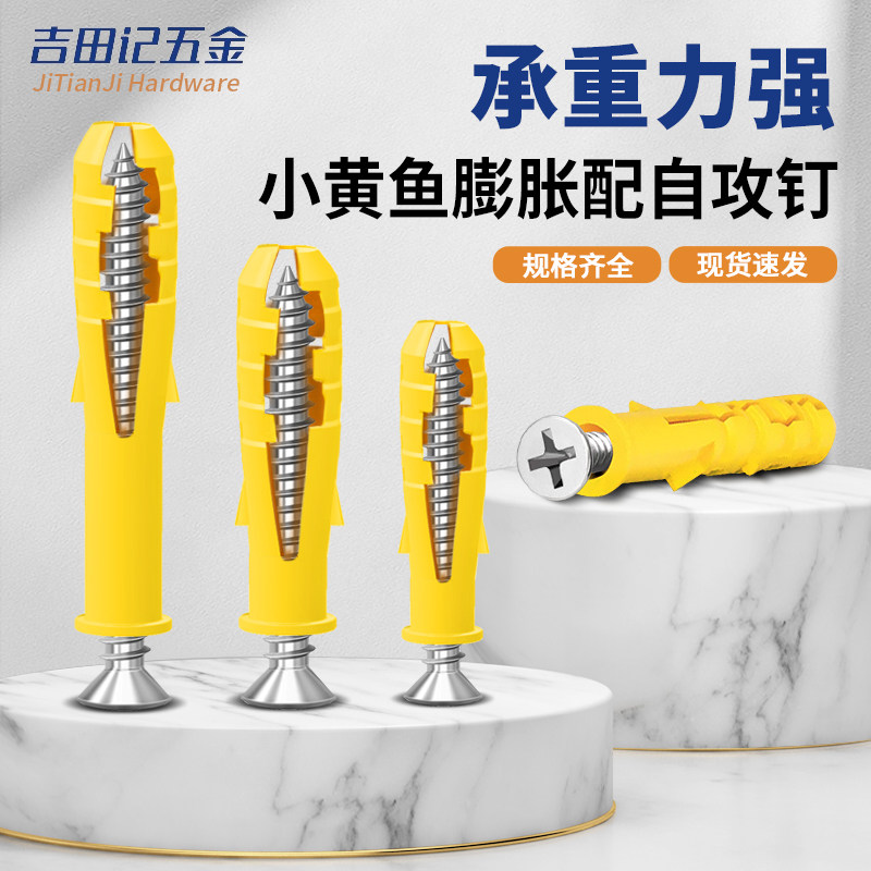 Пластические винты расширения Болты. Небольшие желтые трубы расширения с нержавеющей сталь.