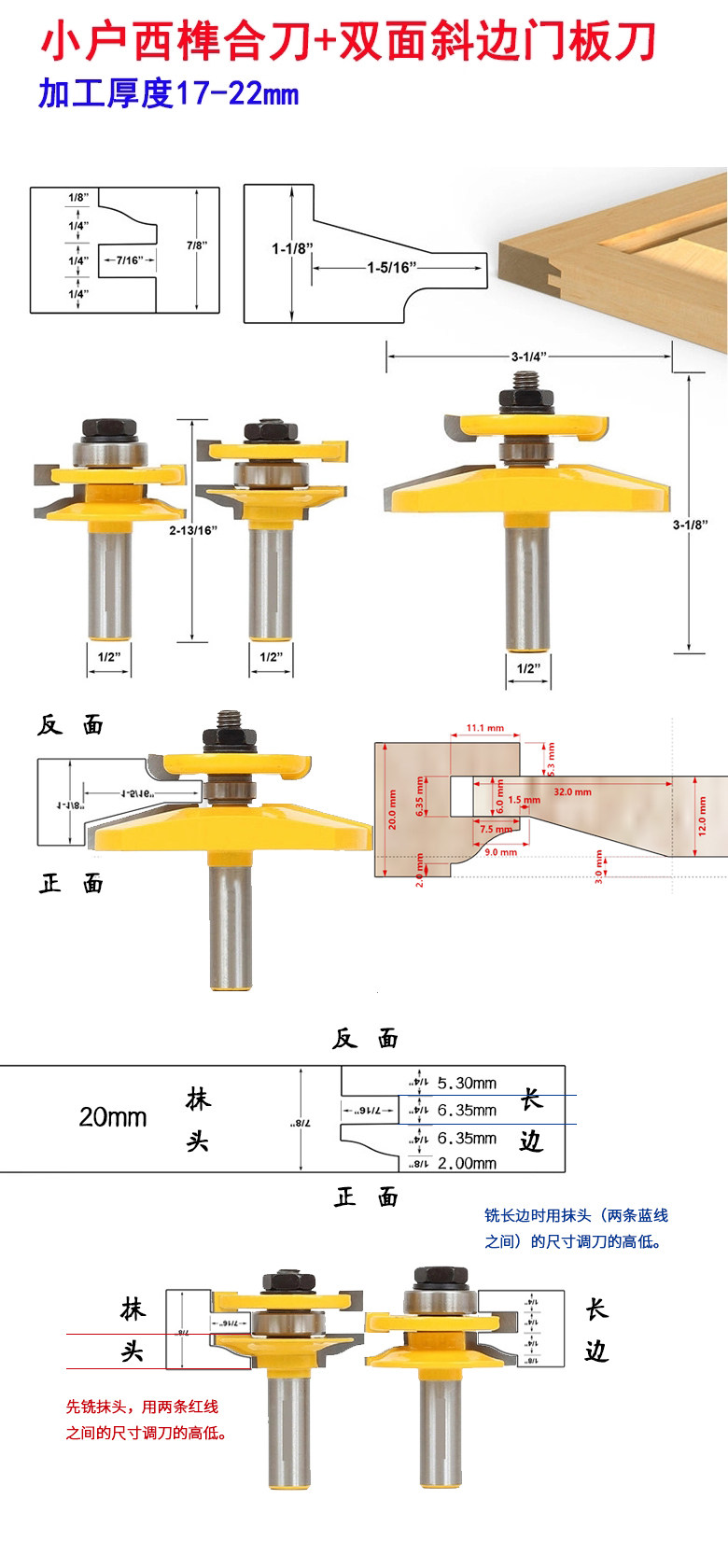3 куски крупных домохозяйств West Tenon -Нож для деревообрабатывающих полярных мельниц Западный дверной панель.