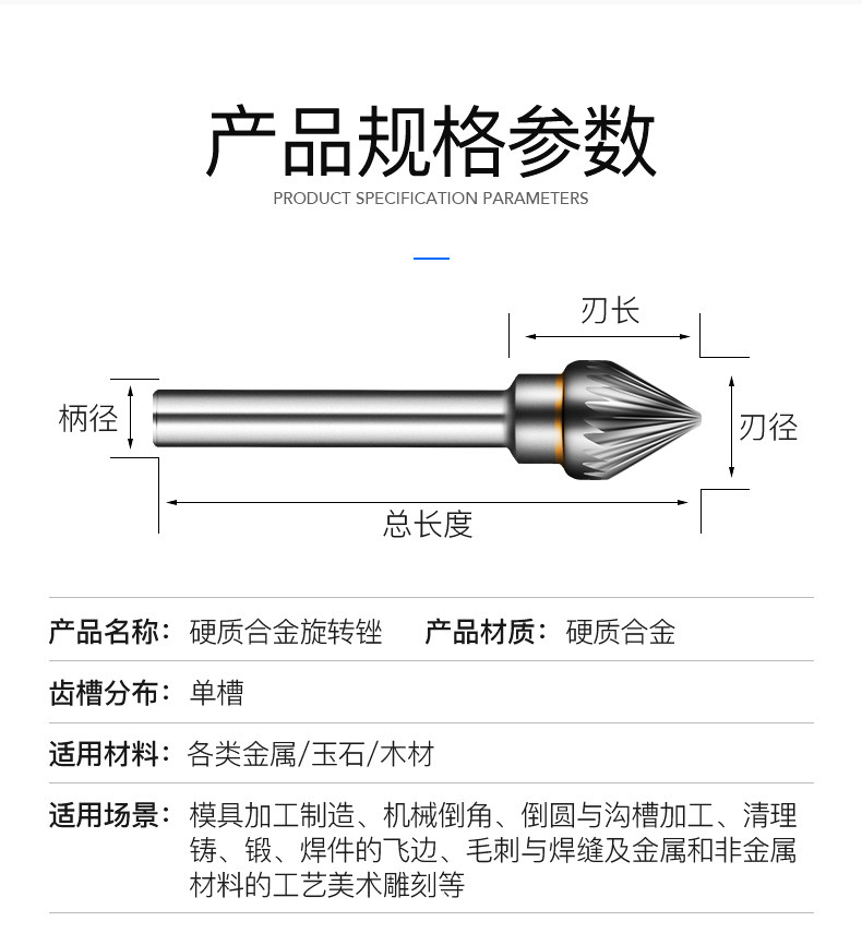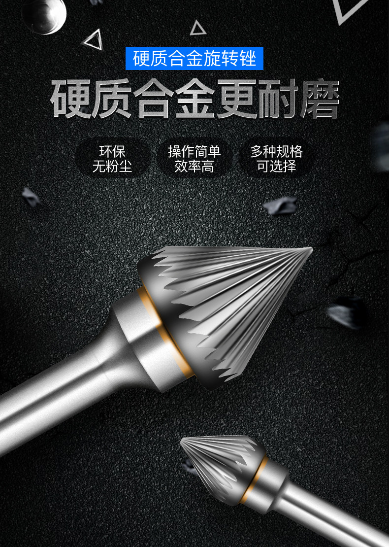 Фрешер с сплава сплав, вращающаяся вольфрамовая стальная фрезерная головка вольфрамовая стальная шлифовальная головка j -обработанная 60 ℃ конические