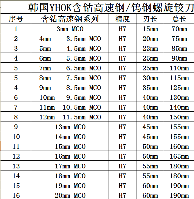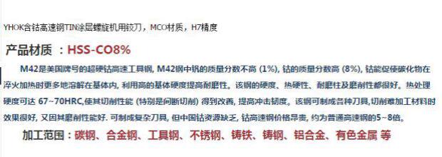 Yhok Cobalt -Содержащий высокий скорость стального оловянного покрытия Spiral Re -Costrating Maco Материал H7 Точность, 3 мм -20 мм полный товары