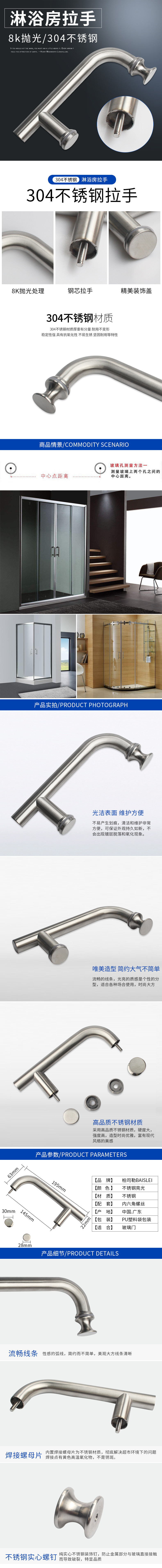 304 из нержавеющей стали в ванной комнате утолщенная стеклянная дверь Потяните рук душевой комната потянуть руку в ванной комнате