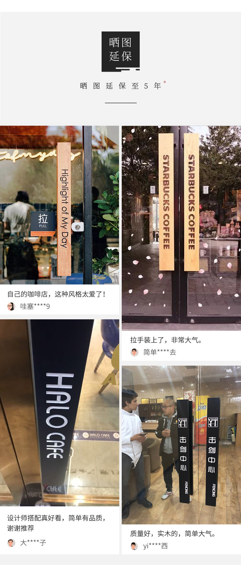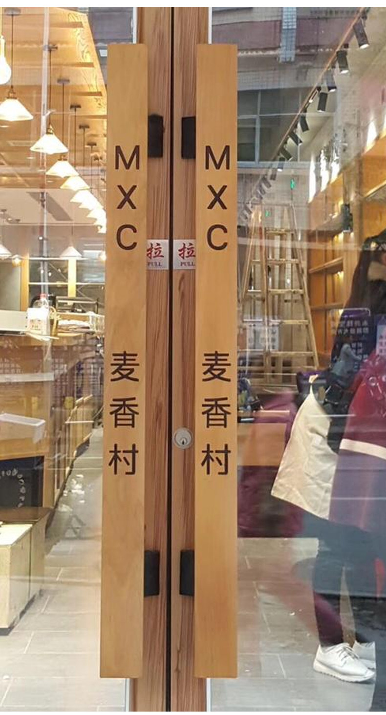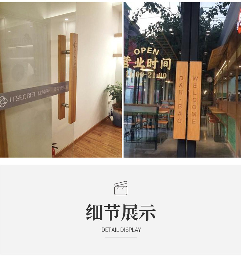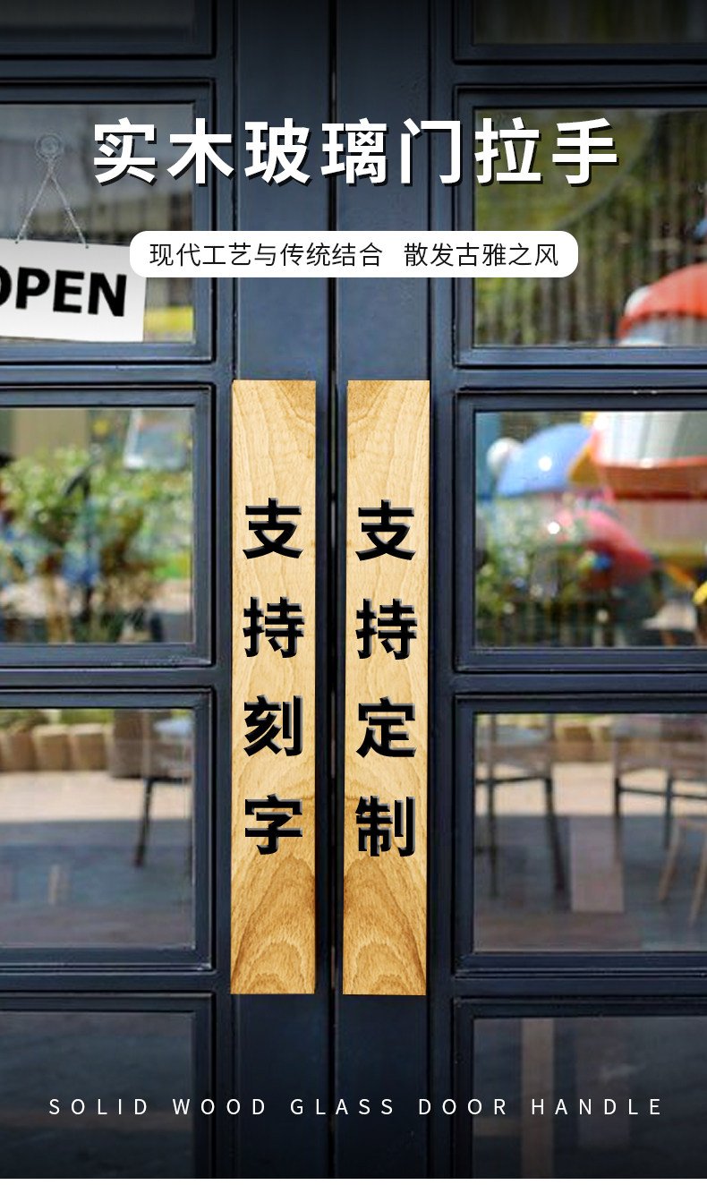 Стеклянная дверь потянуть руку с твердым деревом на заказ скульптуры на заказ логотип логотип Raw Wood Caffice Shop Shop Store Double Door Dair