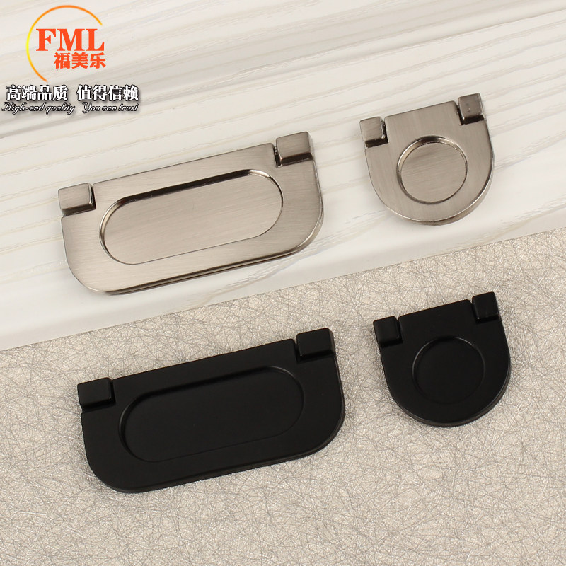 Минджянский ящик тянет руку американскому черному современному минималистскому и невидимому ручному шкафу.