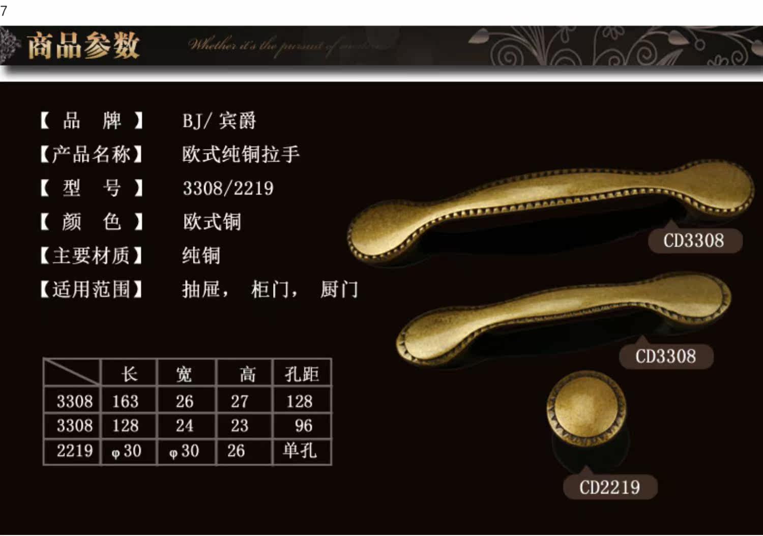 Ящик для шкафа Binjue Pure Медная ручка американского шкафу для дверного шкафа европейский сингл -дыра Новая китайская черная все -канация 3308