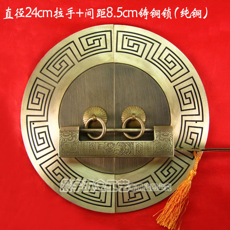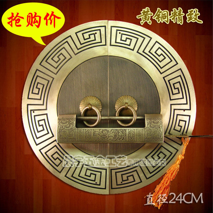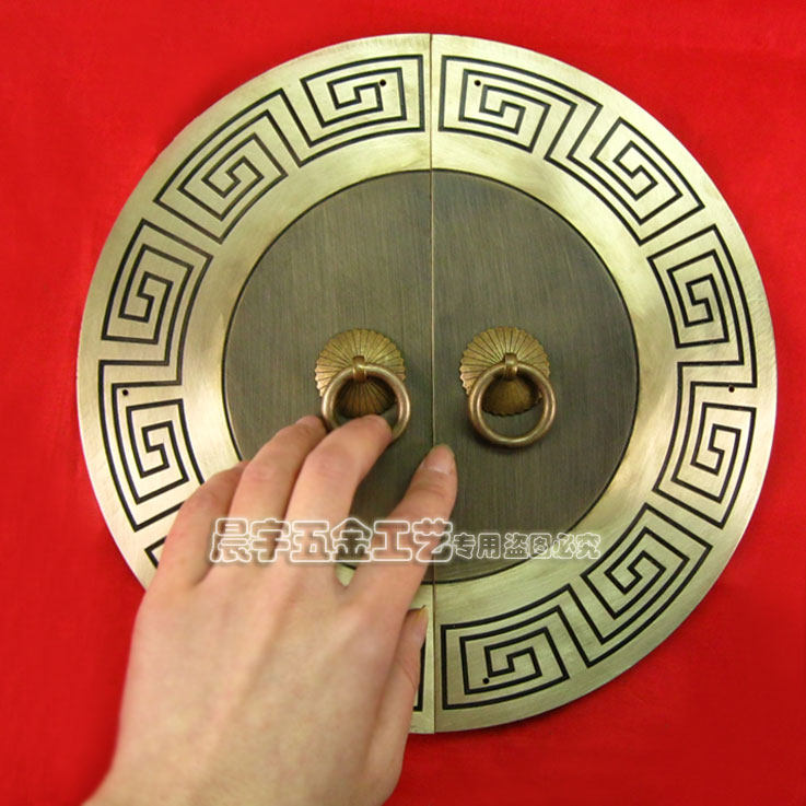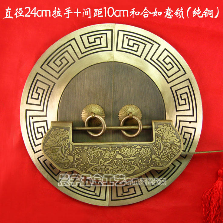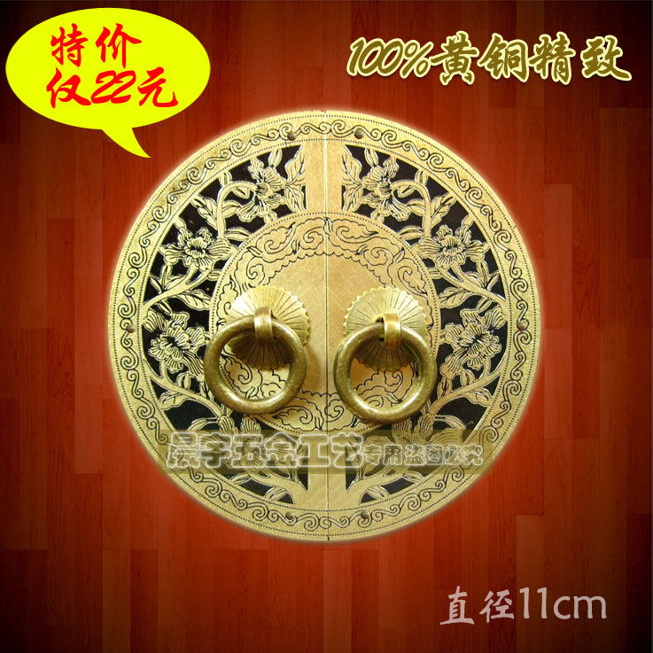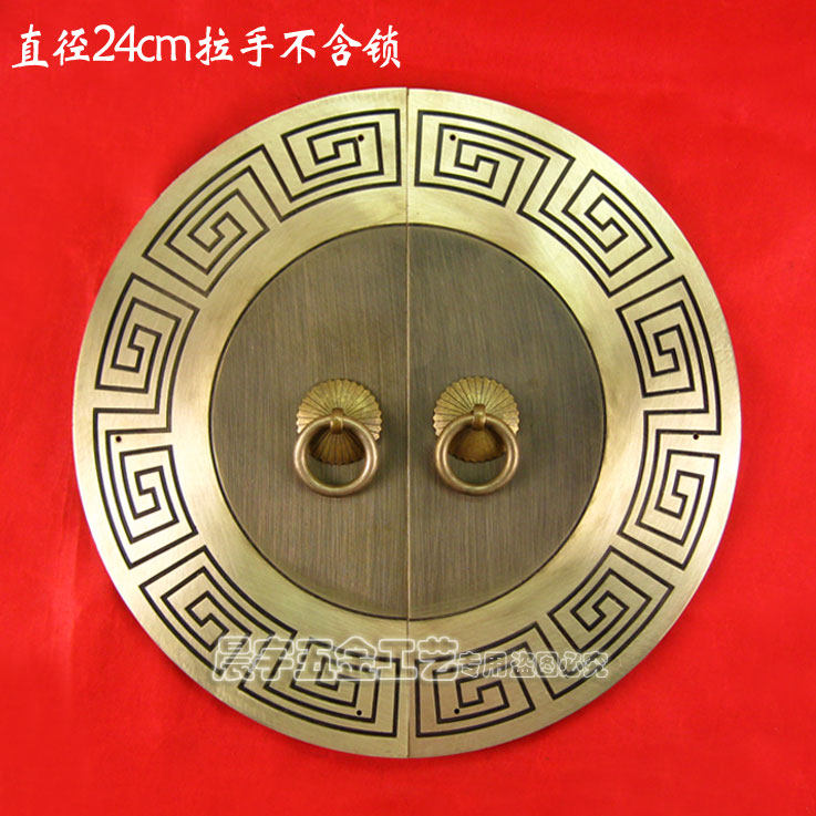 Античный китайский ручка с картами из китайской круглой двери/Чистая медная ручка/резное цветочное шкаф Дверь медная рука/диаметр Cyb205 24 см.