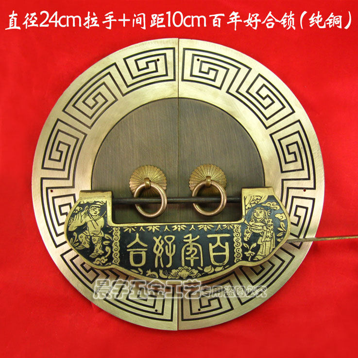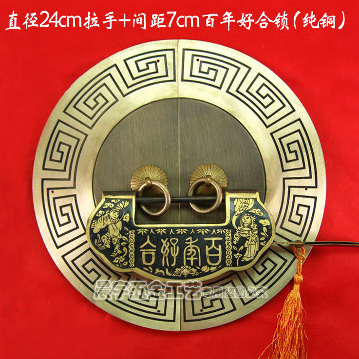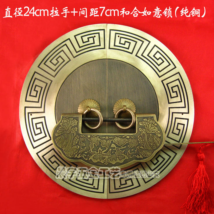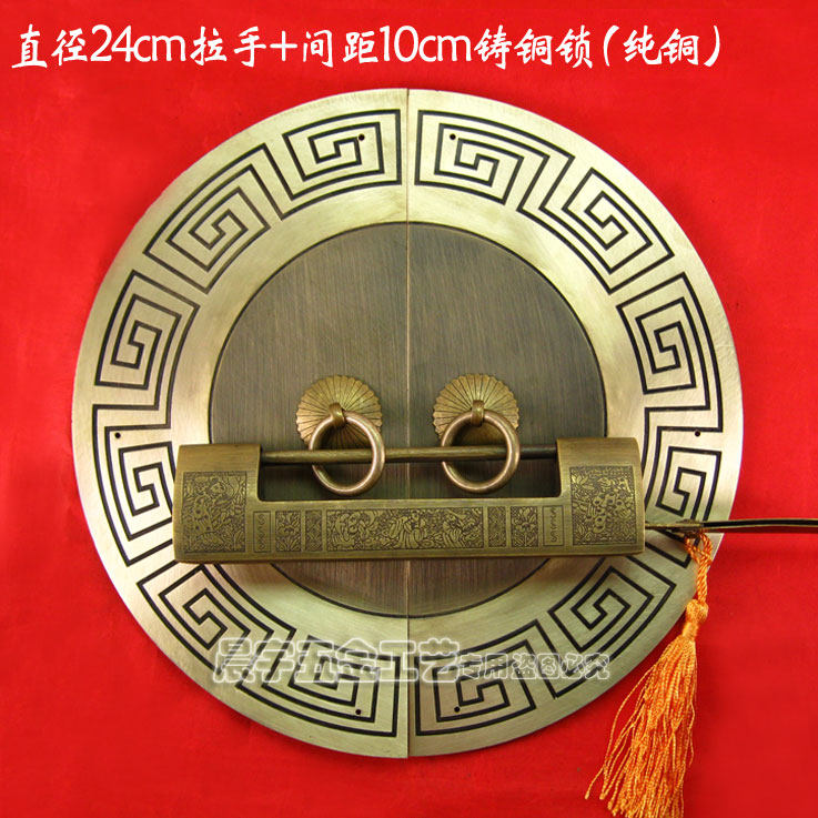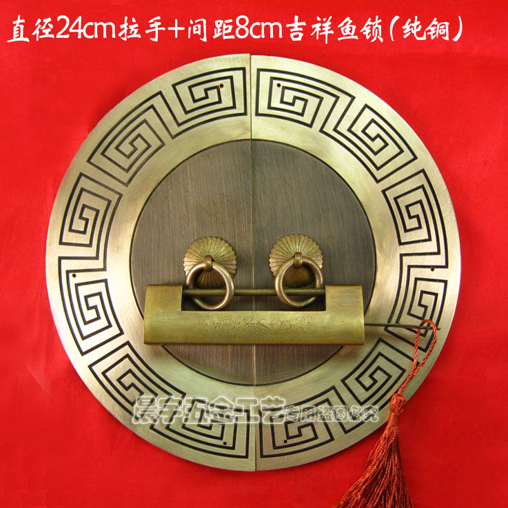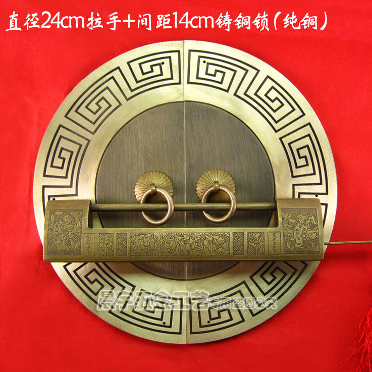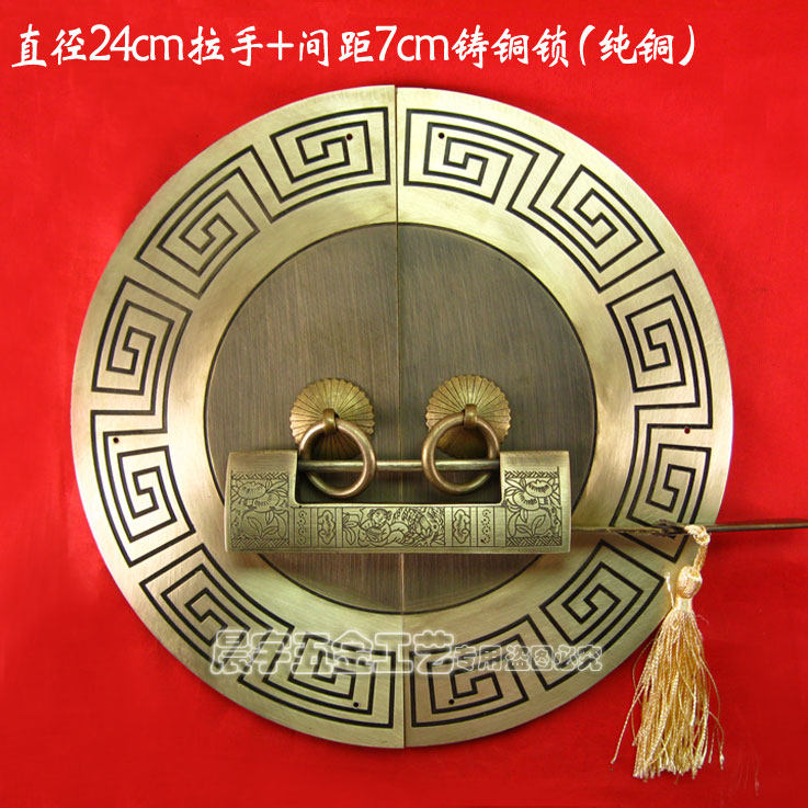 Античный китайский ручка с картами из китайской круглой двери/Чистая медная ручка/резное цветочное шкаф Дверь медная рука/диаметр Cyb205 24 см.