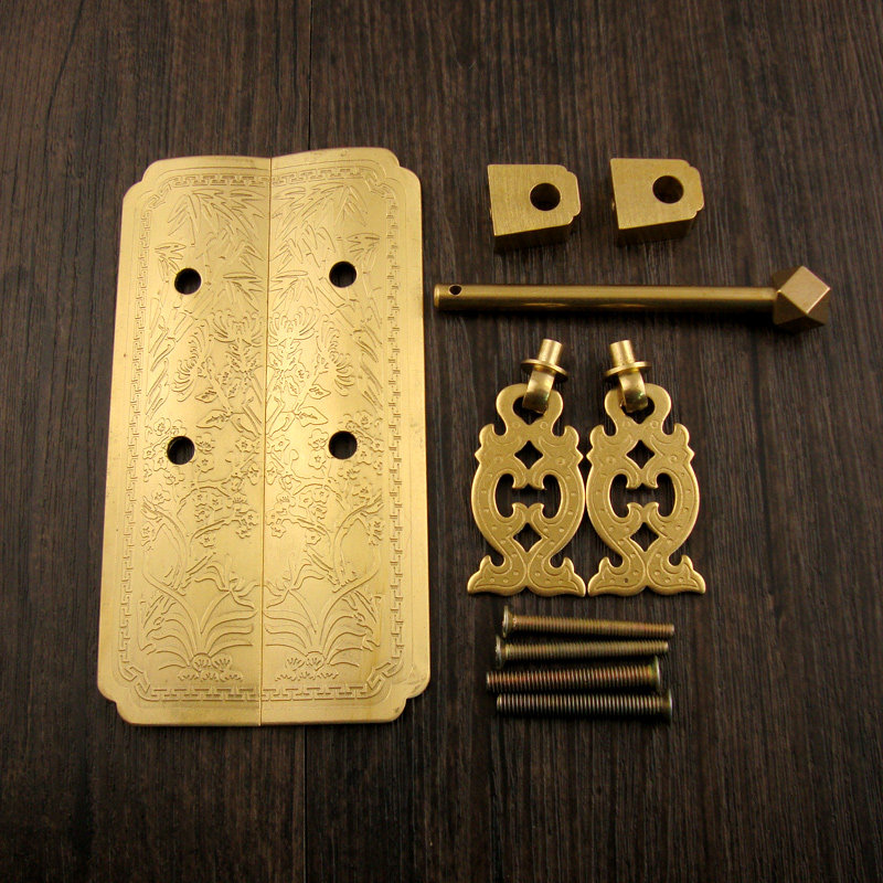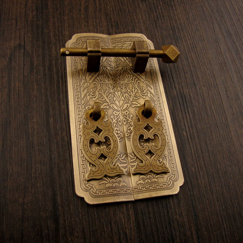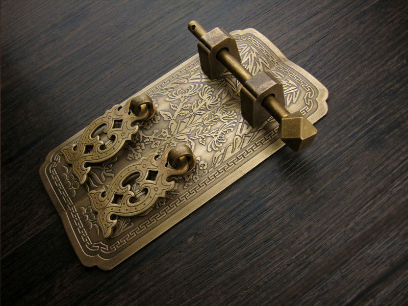 Античный китайский натяжение дверей шкафа Мейлан бамбук хризантема чистый медный шкаф шкаф для медной ручки.
