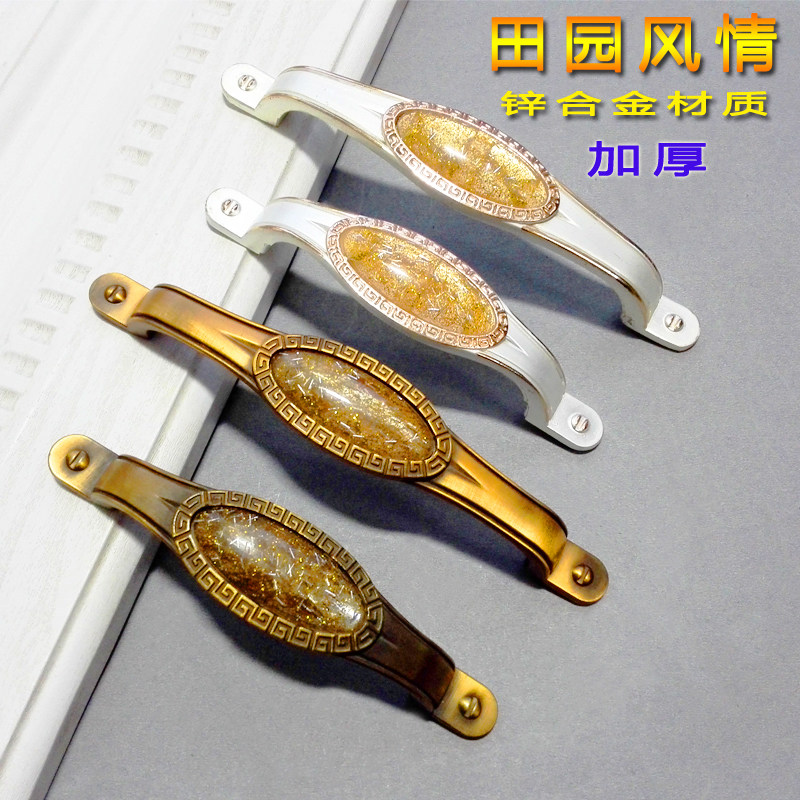Новый пастырский стиль европейский и американский овальная ручка серебряной серебряной золотой проволоки кухонная мебель оборудование простая антикварная ручка дверей