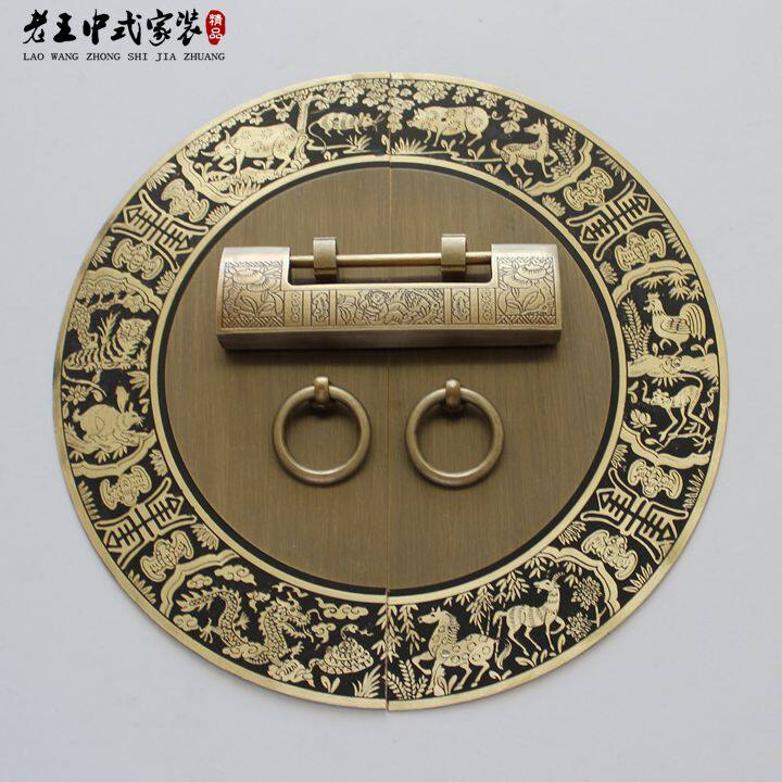 Китайская антикварная ручка из чистой меди, полностью медная дверная ручка шкафа, ретро латунная дверная пластина, декоративный дверной молоток