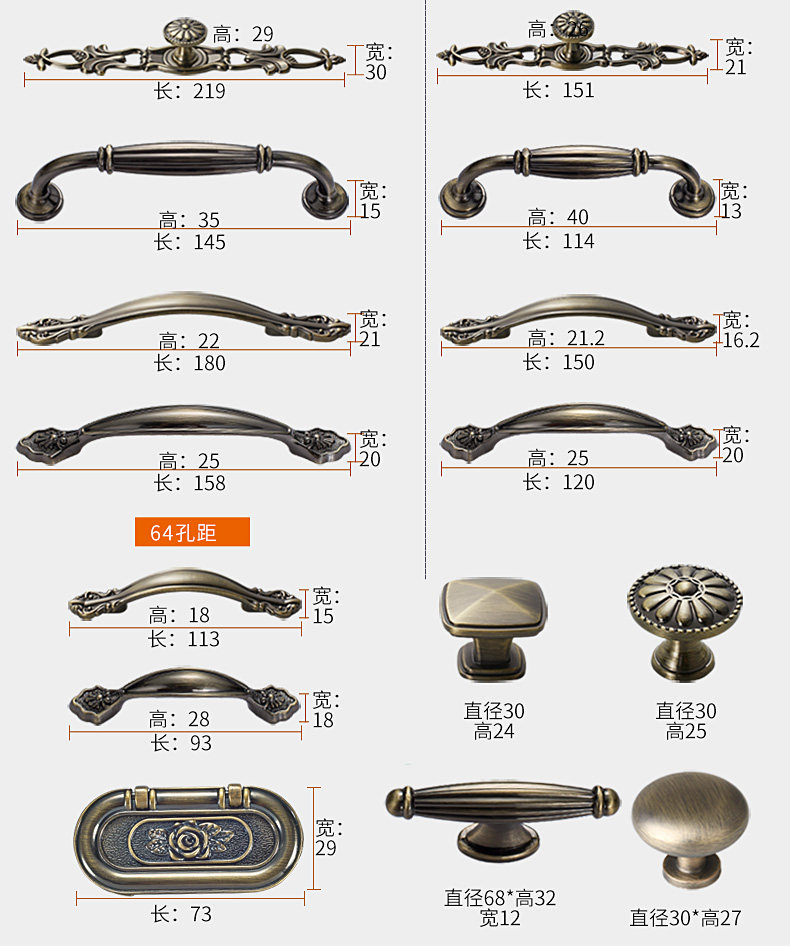 Кабе шкаф шкаф Хермер Европейской в стиле медный шкаф потянуть руку шкаф дверь дверь дверь дверь Hyundai простая одиночная полюсная рука