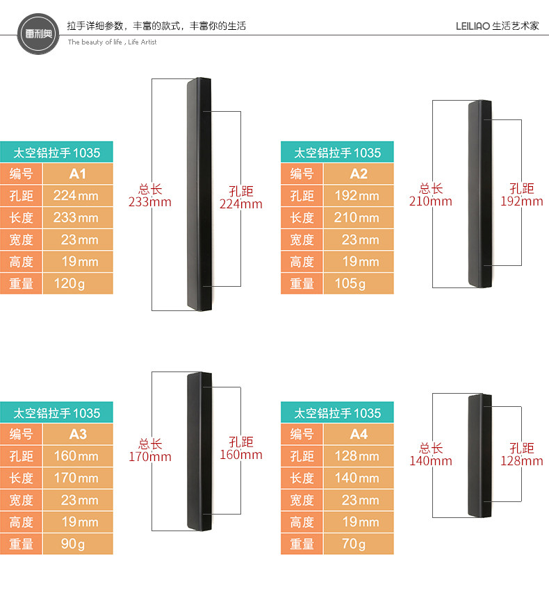 雷利奥 Дверь шкафа тянуть руку алюминиевый сплав современный минималистский черный шкаф