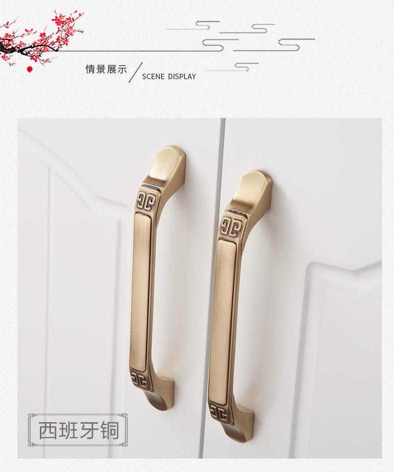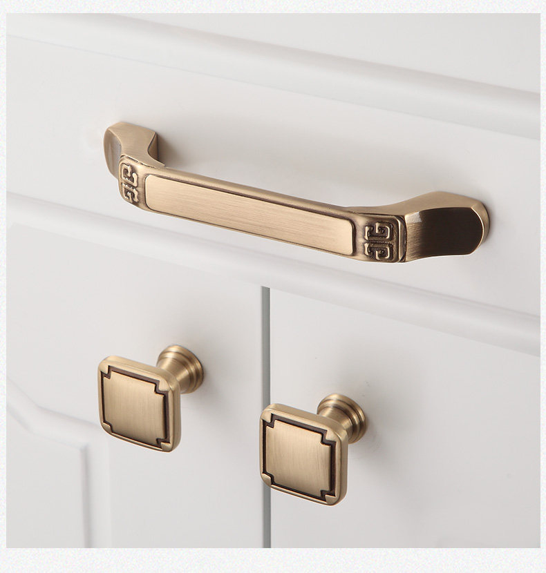 Чистая медная ручная дверь дверь новый китайский шкаф ретро шкаф латунный ручная ручка бронзовый ящик антикварный шкаф все -бронз