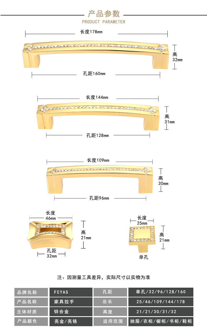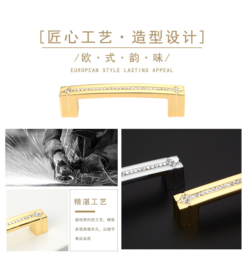 Хрустальная рука рука рука европейского стиля с высоким содержанием алмаза простая европейская дверная ручка шкафа Золотая шкаф