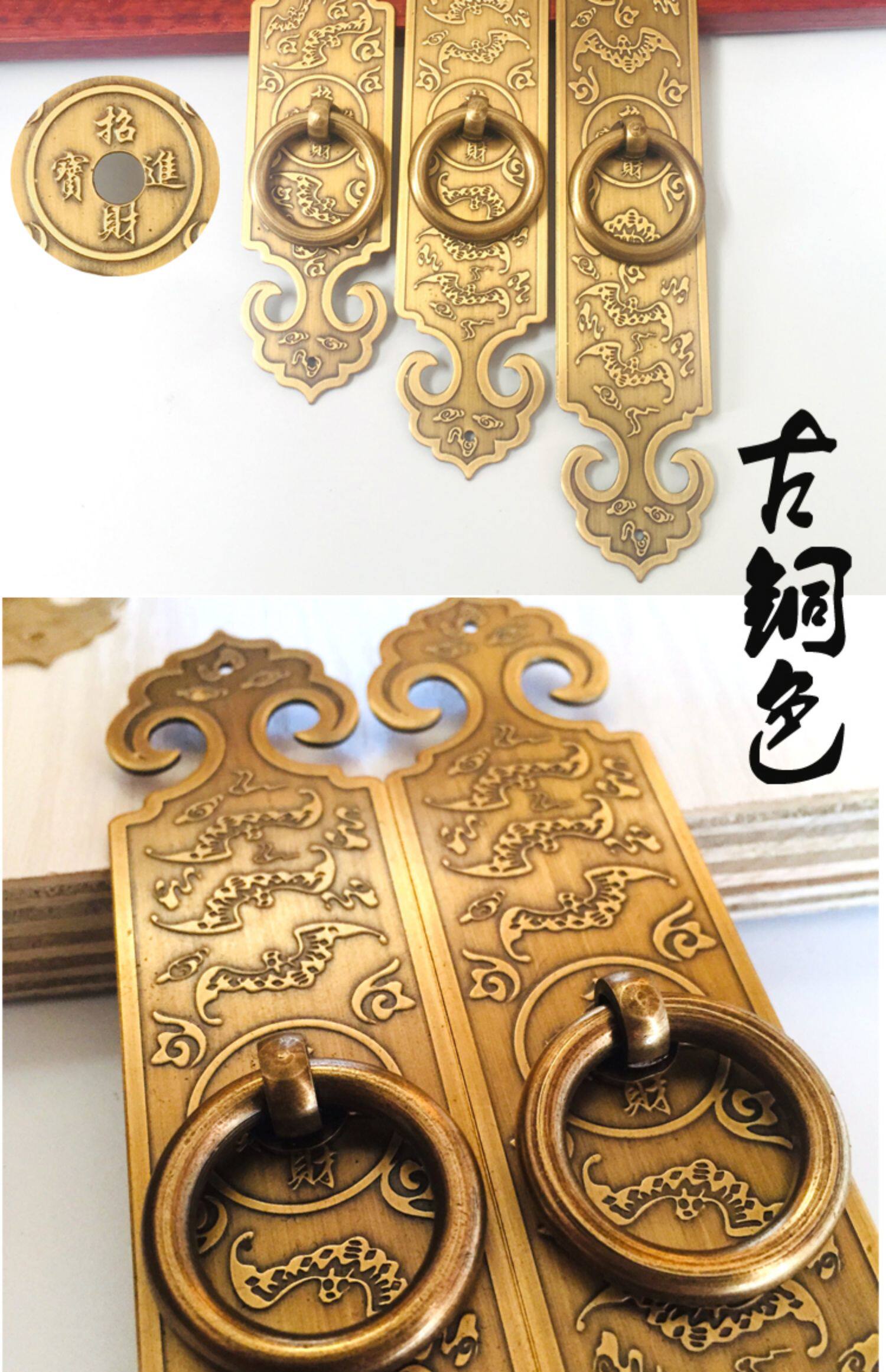Антикварная ручка из чистой меди, ручная дверь, дверь шкафа, прямая дверная ручка, резная ручка с одним отверстием, чтобы привлечь богатство