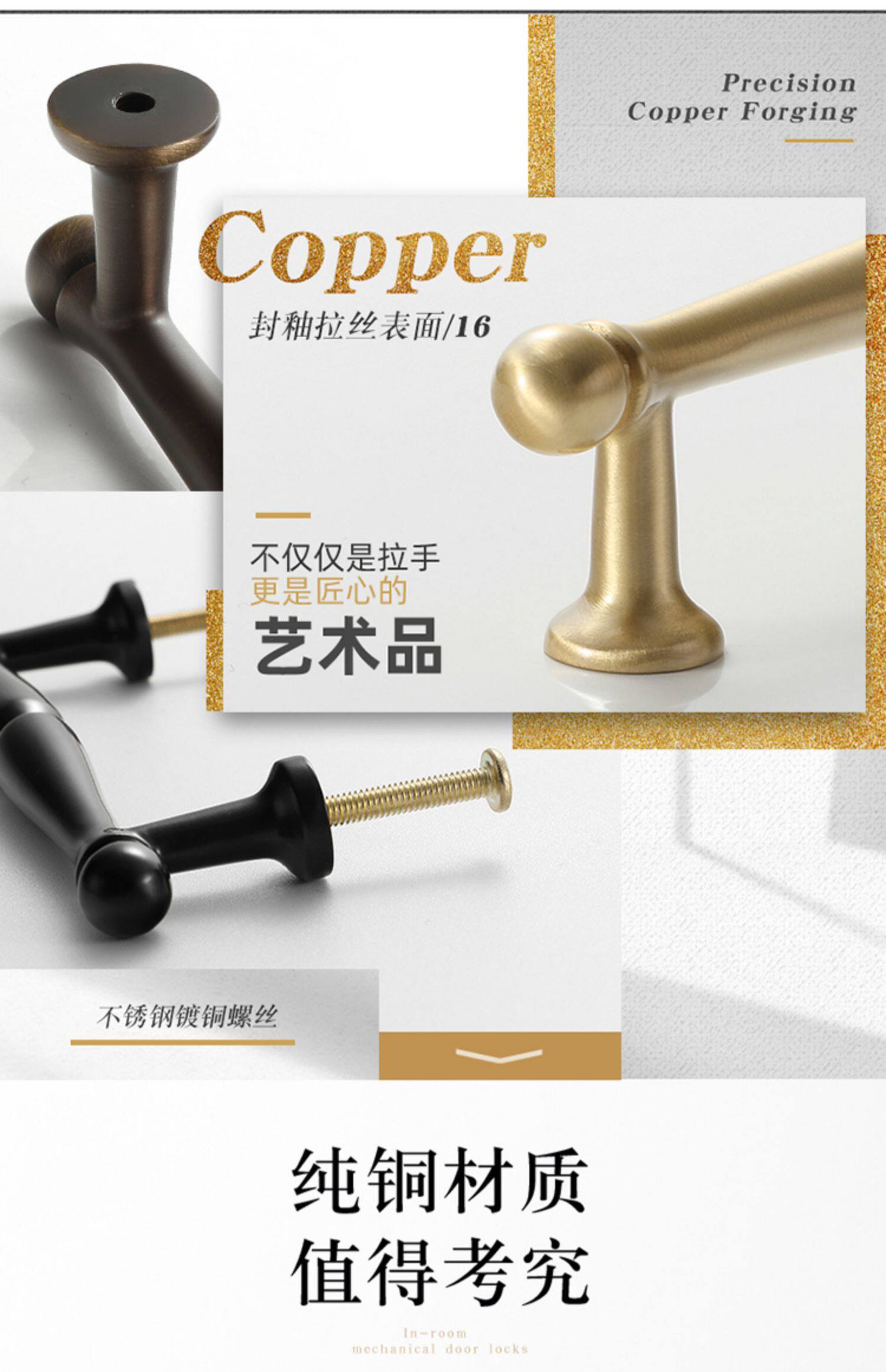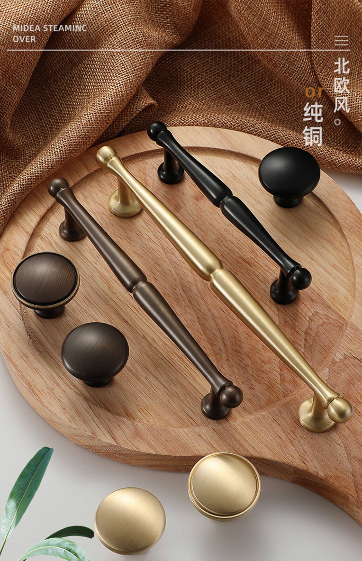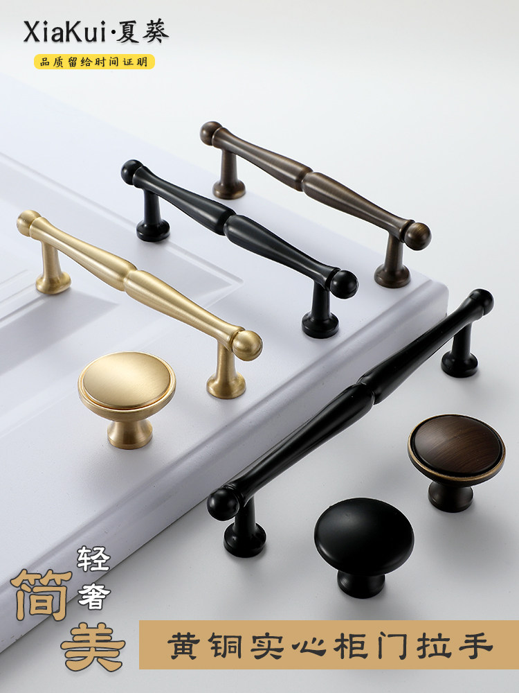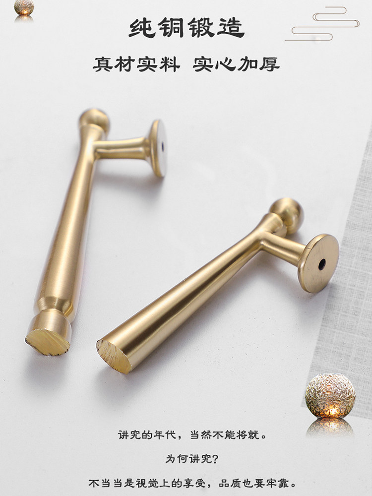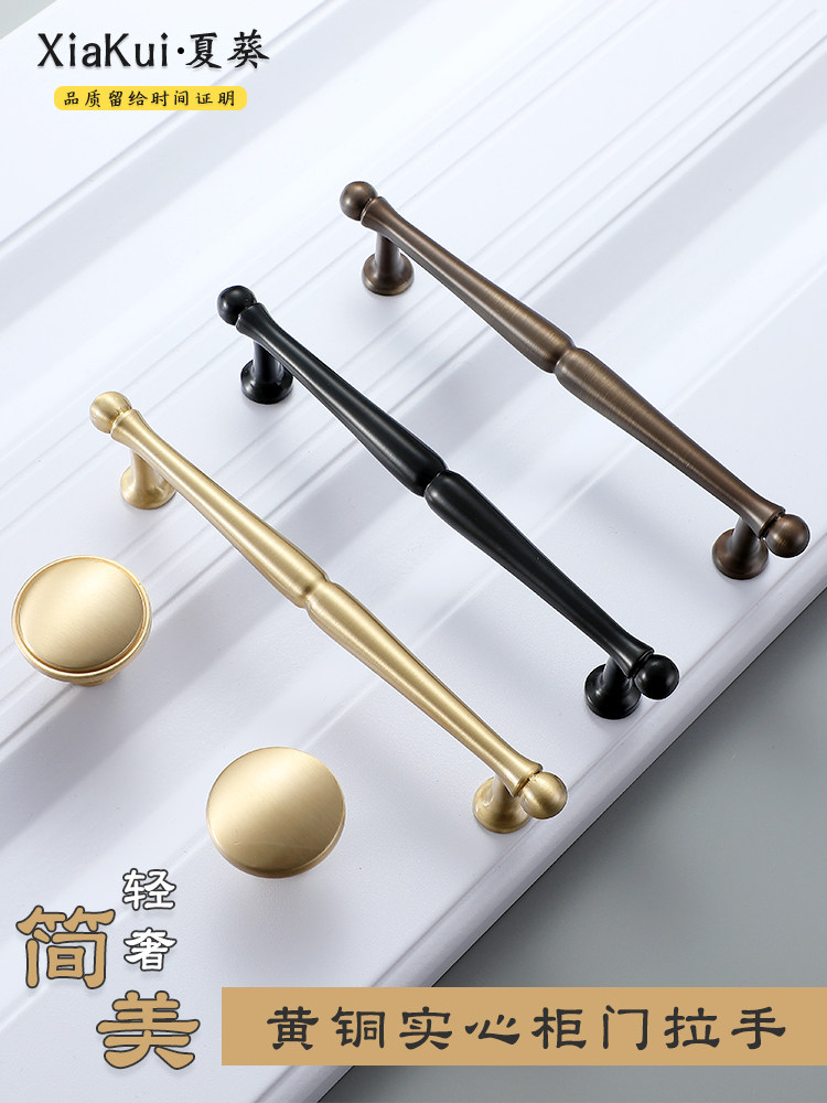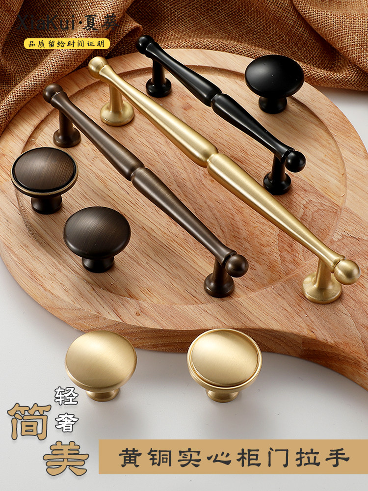 Ручка для гардероба из чистой меди, американская простая ручка для двери шкафа, ящика, антикварная, полностью медная, легкая, роскошная маленькая ручка из золотой латуни