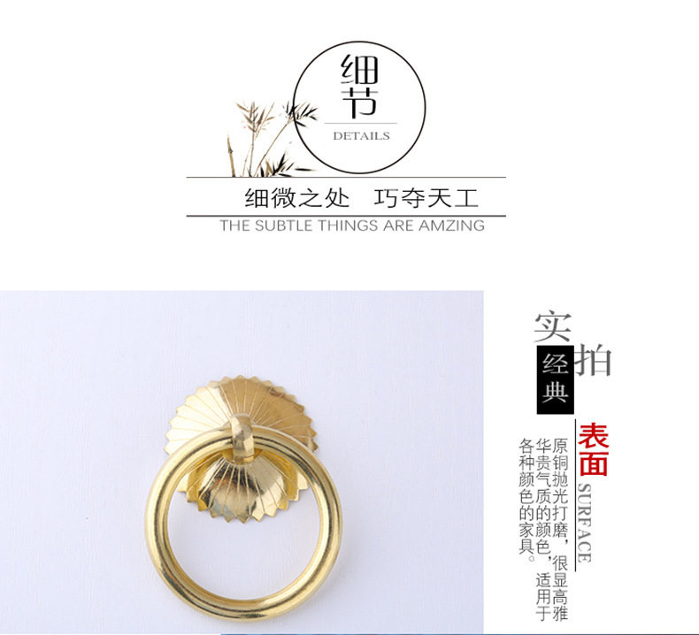 Латунное медное кольцо, ретро бронзовый браслет, китайский стиль, простой и элегантный дизайн