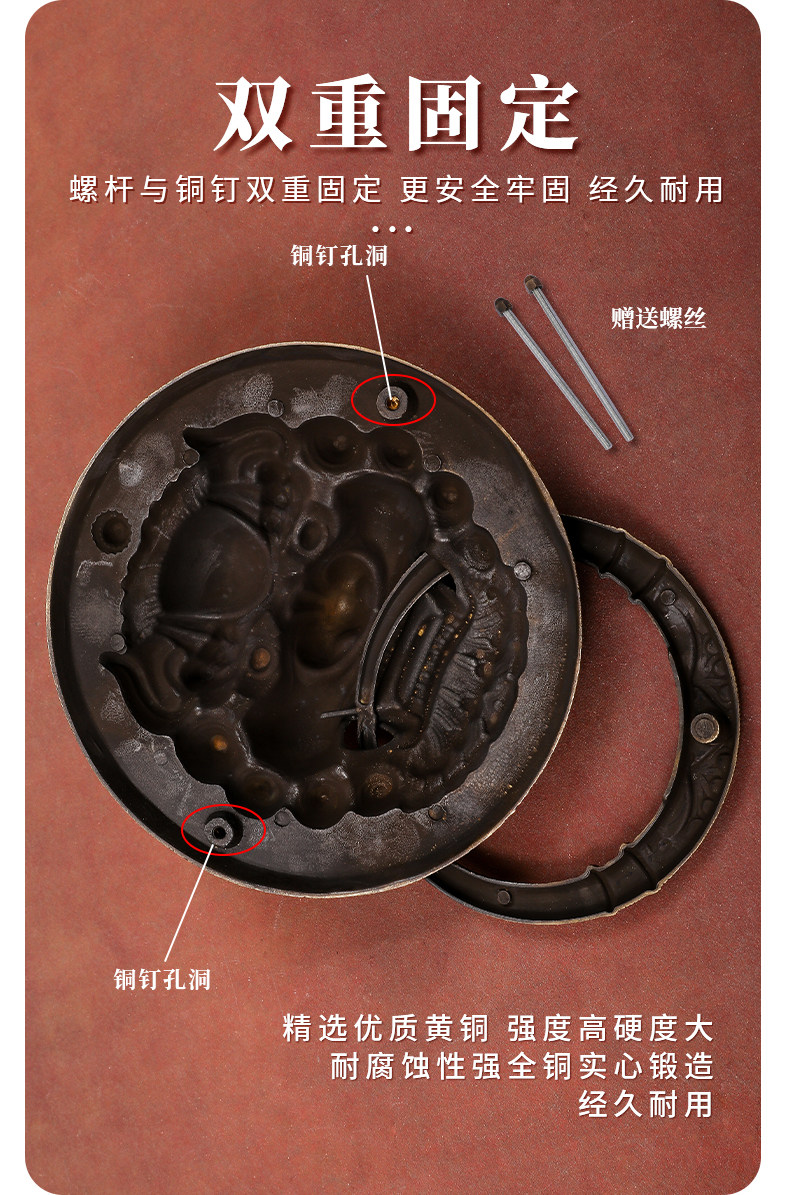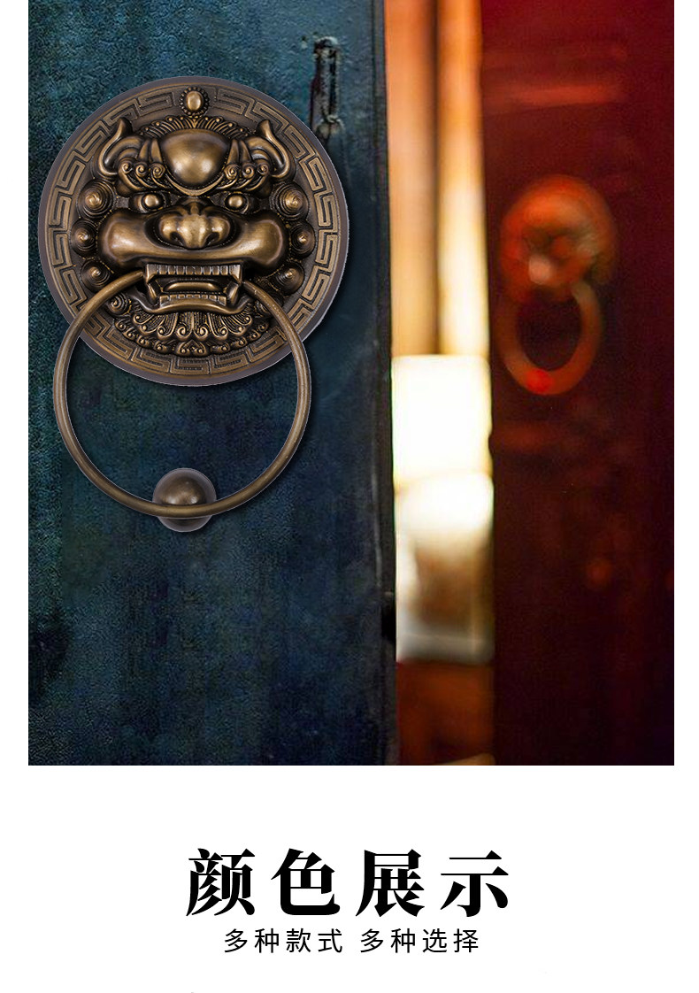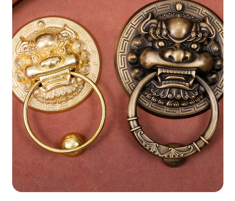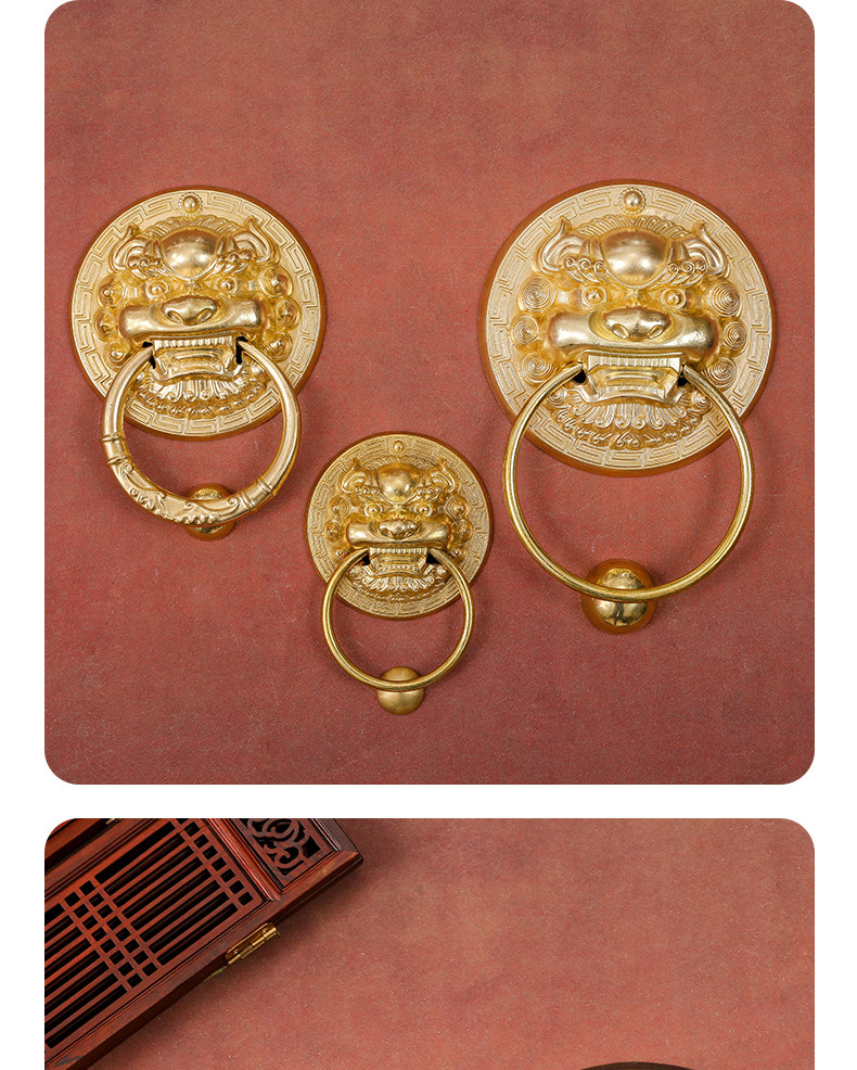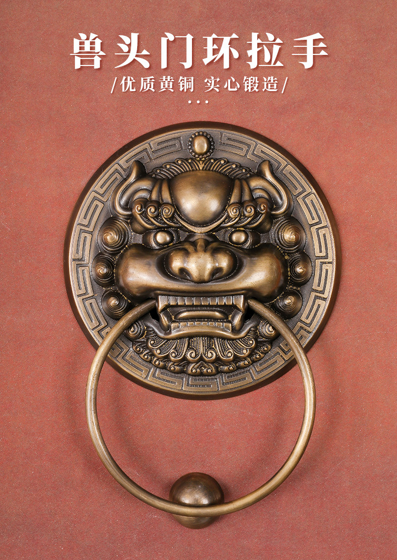 Китайская антикварная чистая медная дверь зверя дверь, медная голова льва тигра Кирин ручка ручка ретро медное кольцо