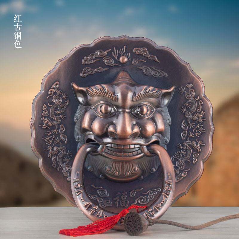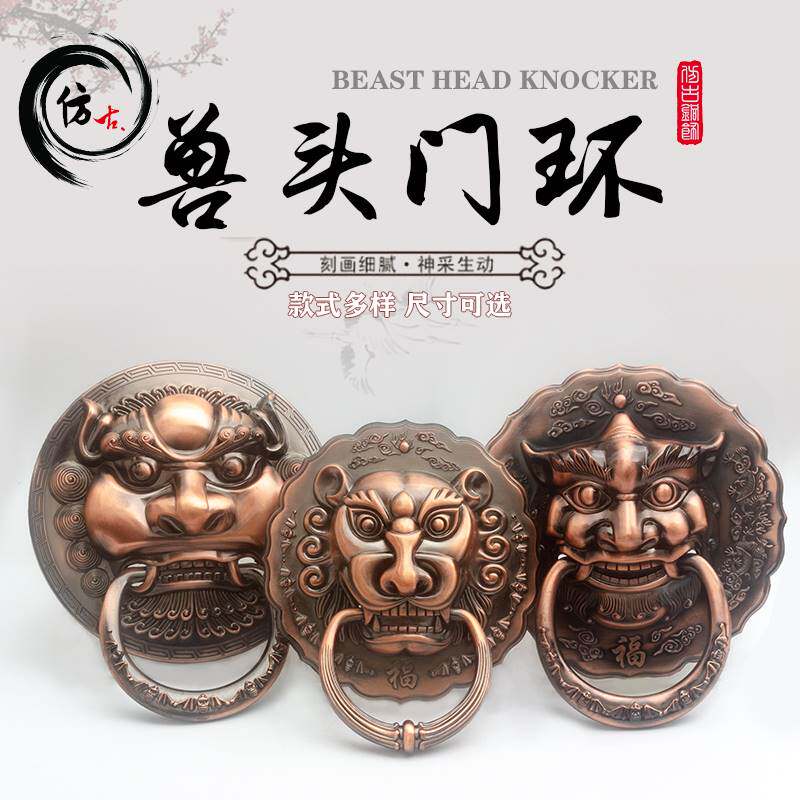 Положение головного ювелирного кольца голова зверя, старая модная дверная дверная дверь, медная ручка древней древней двери малоберцовой кости, аксессуары для закрепления кольца.