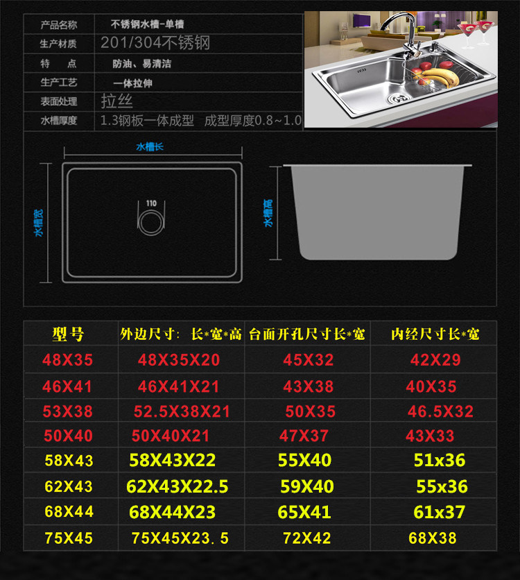 Кухня 304 из нержавеющей стали размер раковины с утолщенным встроенными платформой для мытья тазовой тазовой тазовой тазовой платформы.