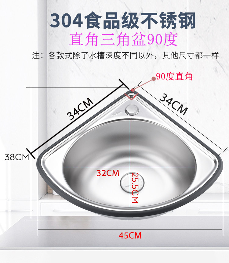 Треугольный бассейн из нержавеющей стали сгущенным ультраугольный ультрал ультрал угол угла однолокового бассейна для промывки бассейна для мытья бассейн для промывки бассейна, промывая санитарные нации.