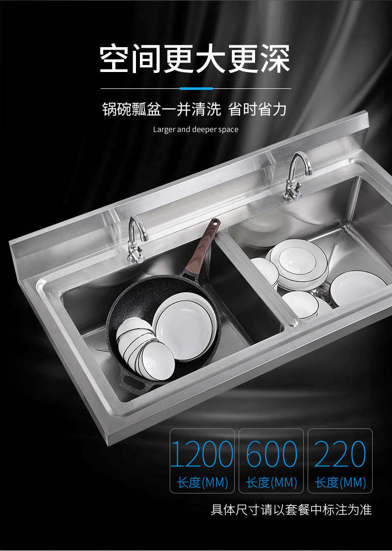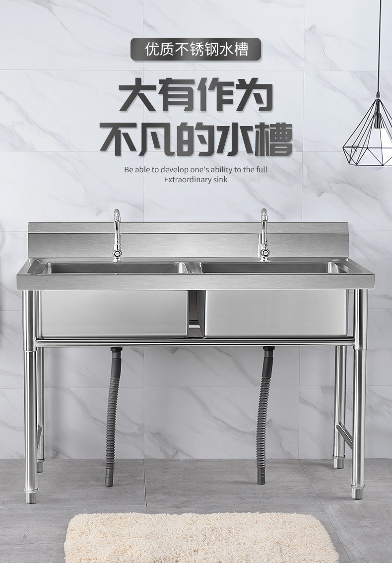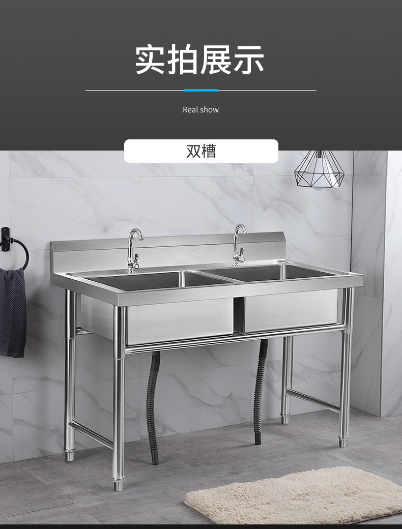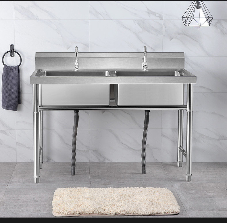Коммерческая нержавеющая сталь Ремень для раковины Стент Двойной бассейн Санчи Кафетерий.