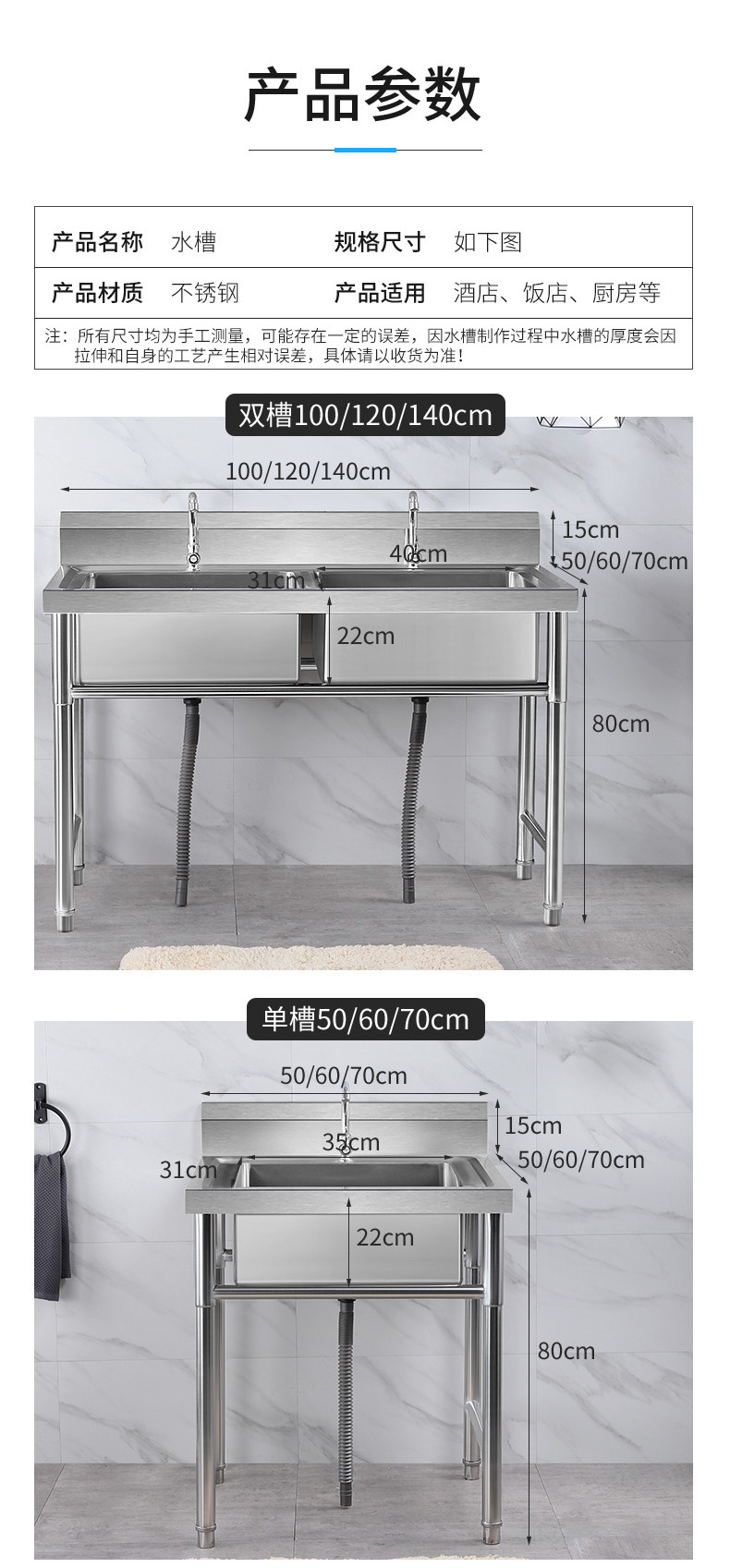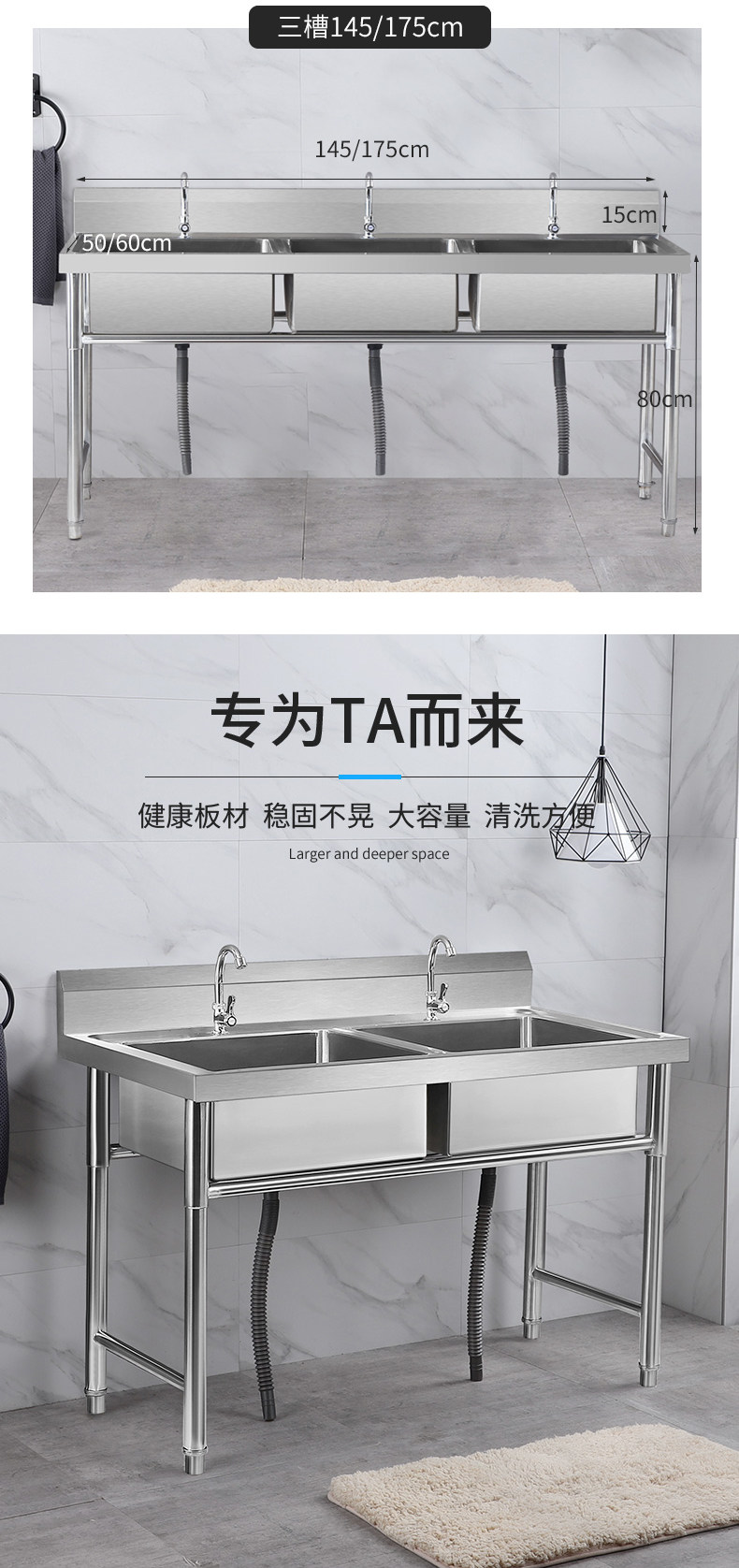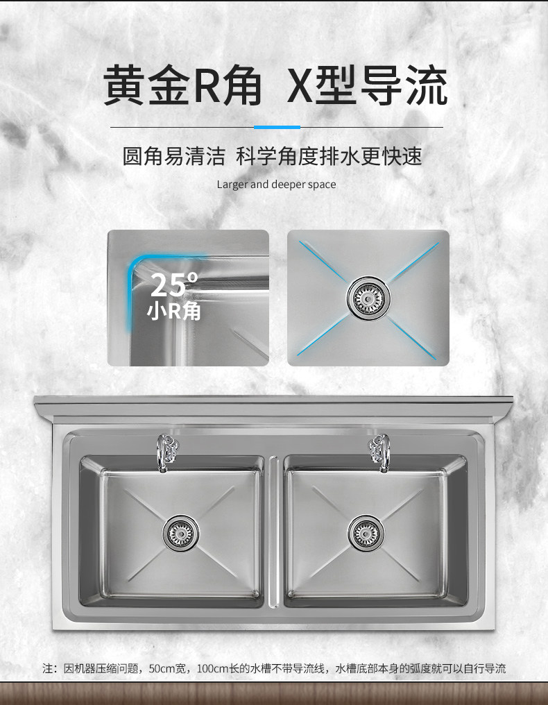 Коммерческая нержавеющая сталь Ремень для раковины Стент Двойной бассейн Санчи Кафетерий.