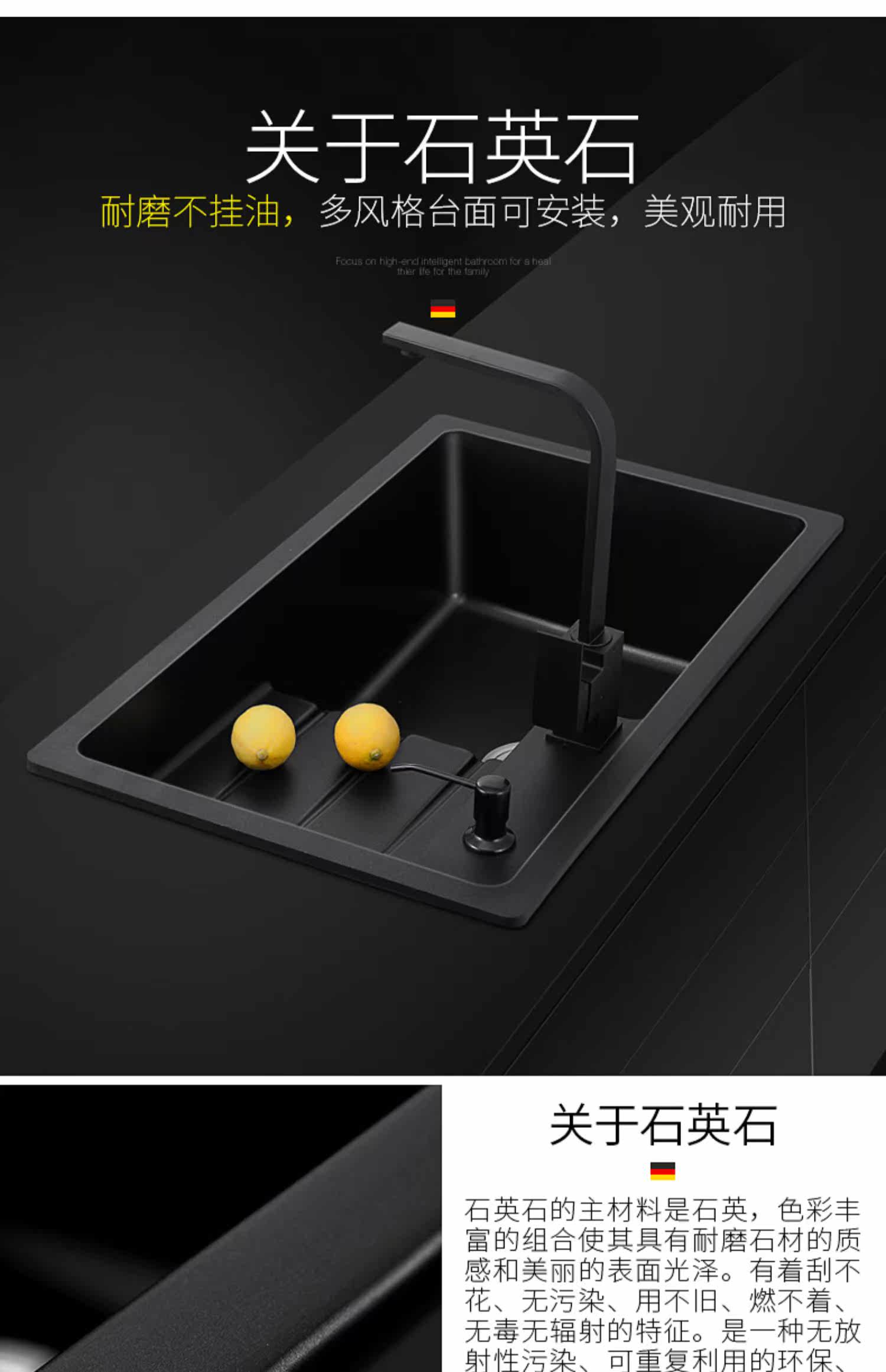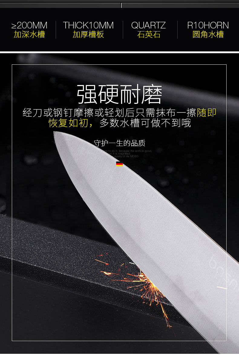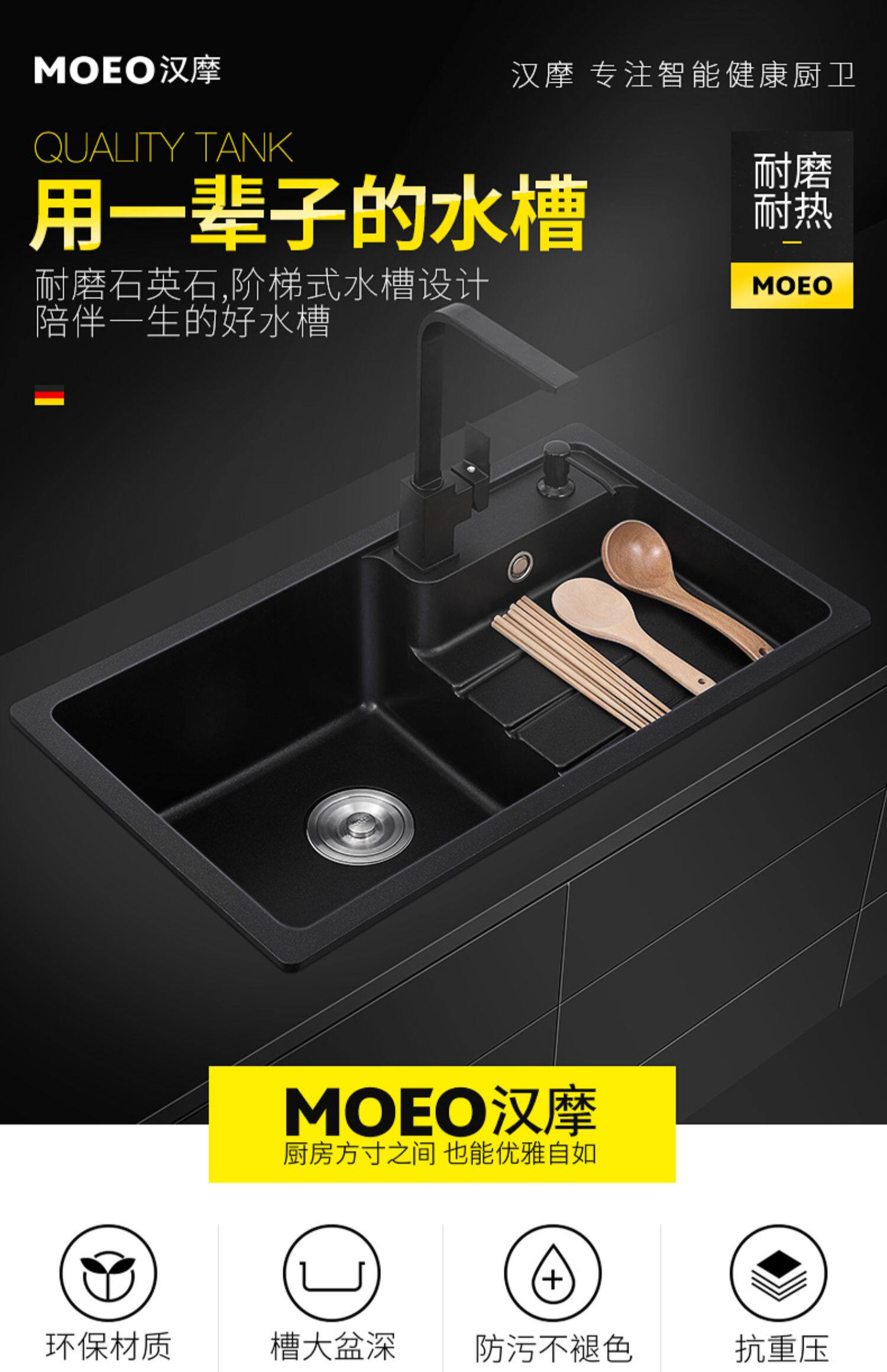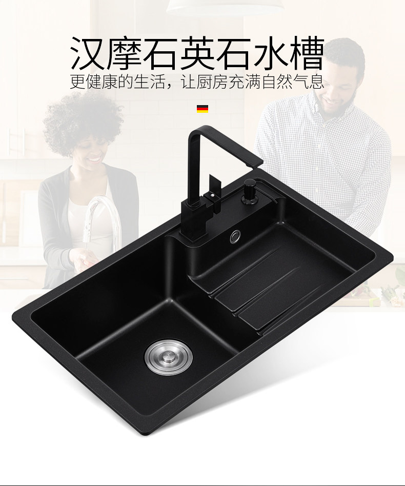 Германия Hanma Kitchen Quartz Одиночный ломтик одноразвитый гранитный мебельный дом для мытья бассейна для мытья бассейн