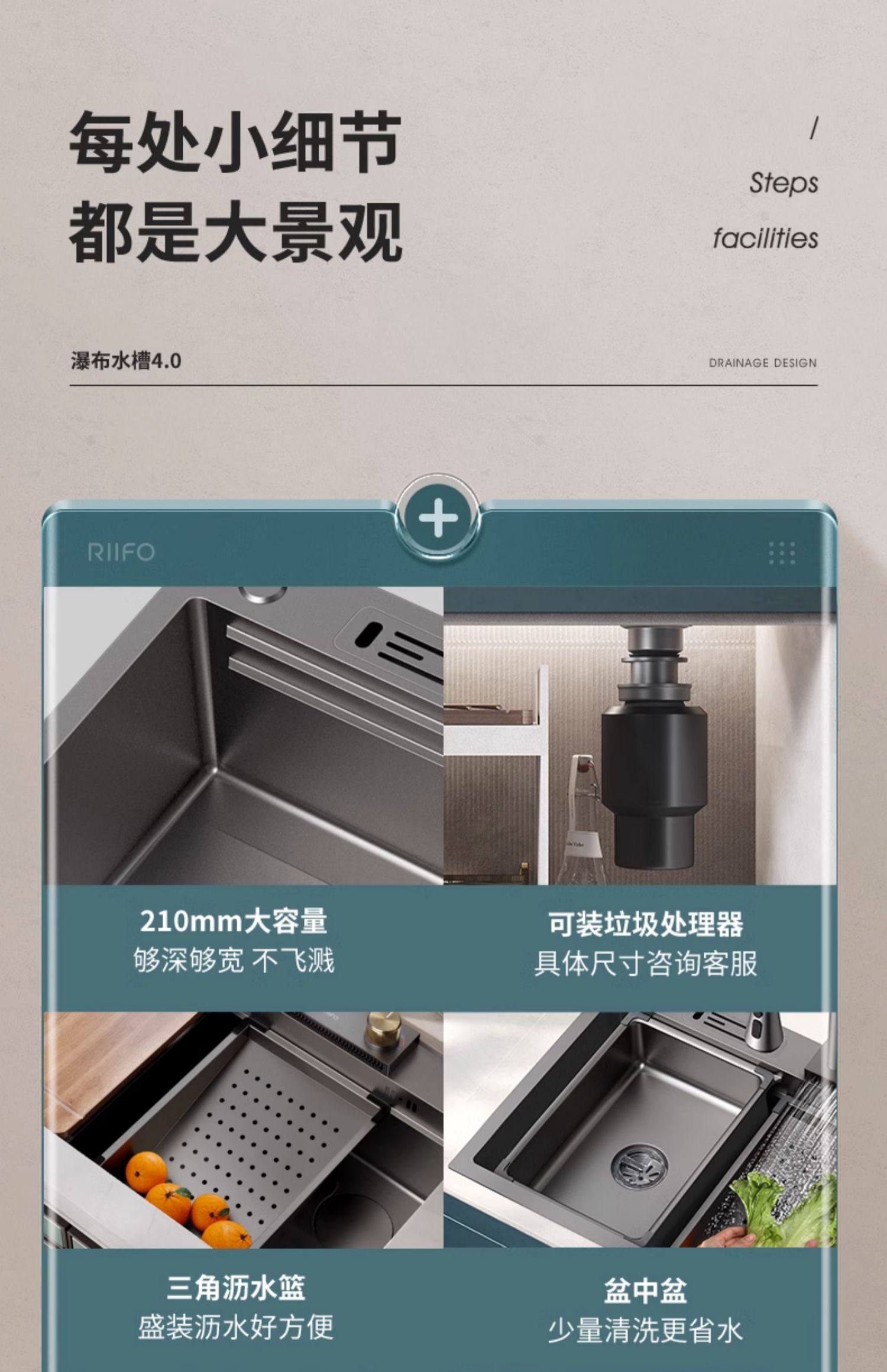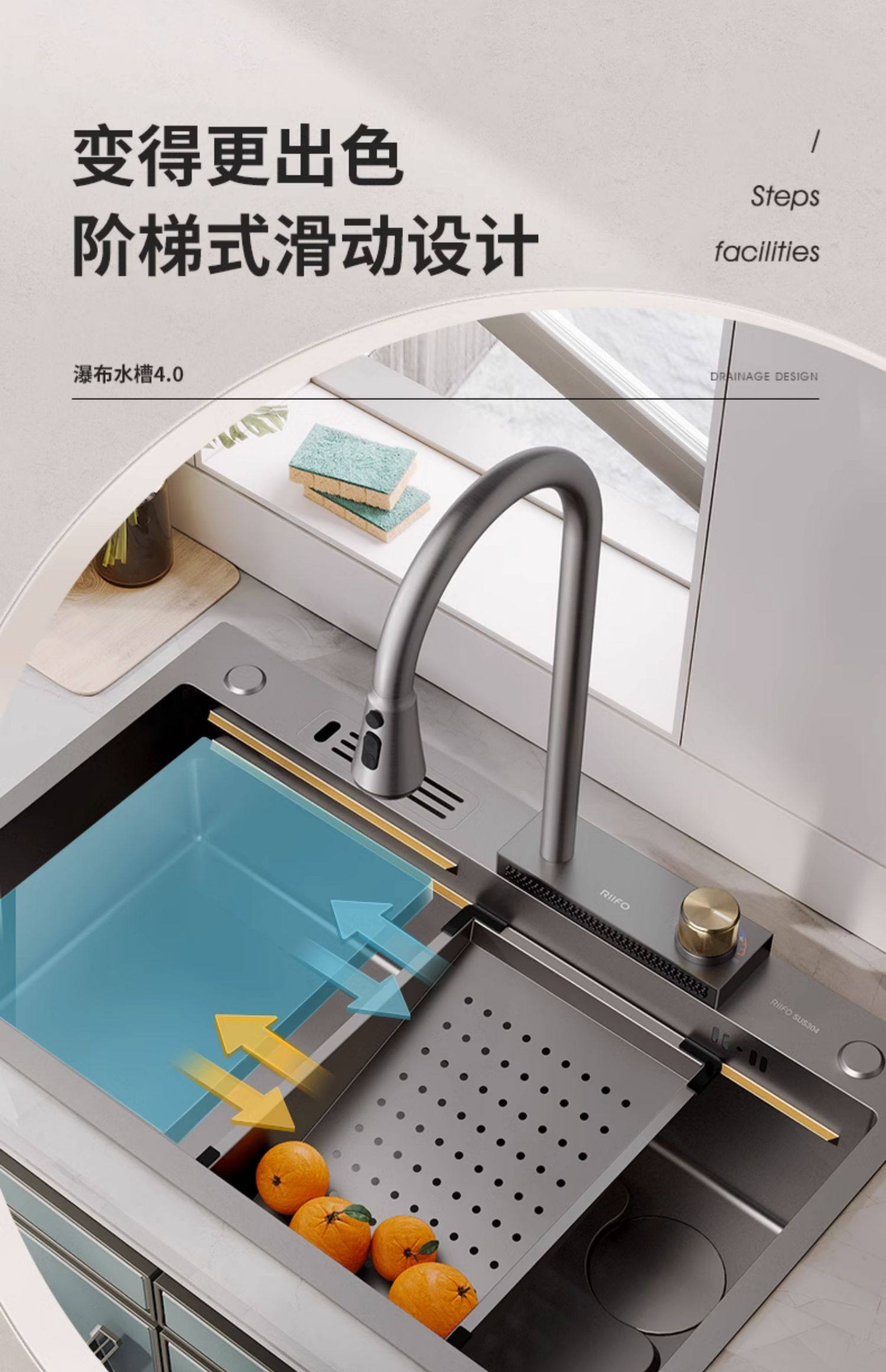 Rifeng Waterfall Rain Water Tack 304 Ошибка из нержавеющей стали Домашний кухня для мыть