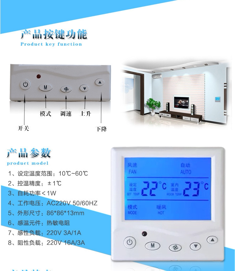 Термостат с ЖК-дисплеем подходит для контроля температуры фанкойлов, электрических клапанов, электрических заслонок, электрических воздухоотводчиков и отопительного оборудования.Используя очень большой ЖК-дисплей, температура в помещении определяется с помощью датчика температуры NTC (отрицательный температурный коэффициент) внутри термостата и сравнивается с температурой, установленной пользователем в режиме реального времени, он автоматически регулирует объем забора воздуха для отопления и охлаждения и открывает или закрывает электрический трубный клапан для поддержания постоянной температуры в помещении.