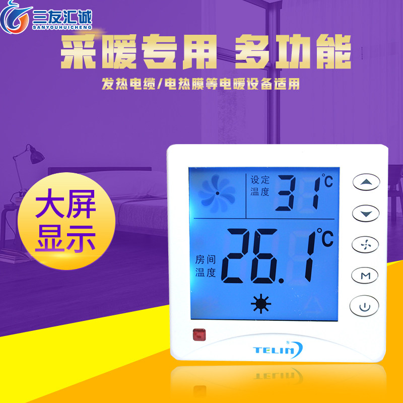Xi'an Central Conditioning LCD Smart Tempret Dempret Control 808-H Пластина вентилятора Труба Большой панель экрана Трехступенчатый выключатель