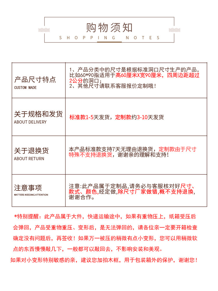 - Легко быть поврежденным, если деревянная рама требуется за пределами коробки, добавьте этот предмет, 100 юаней один