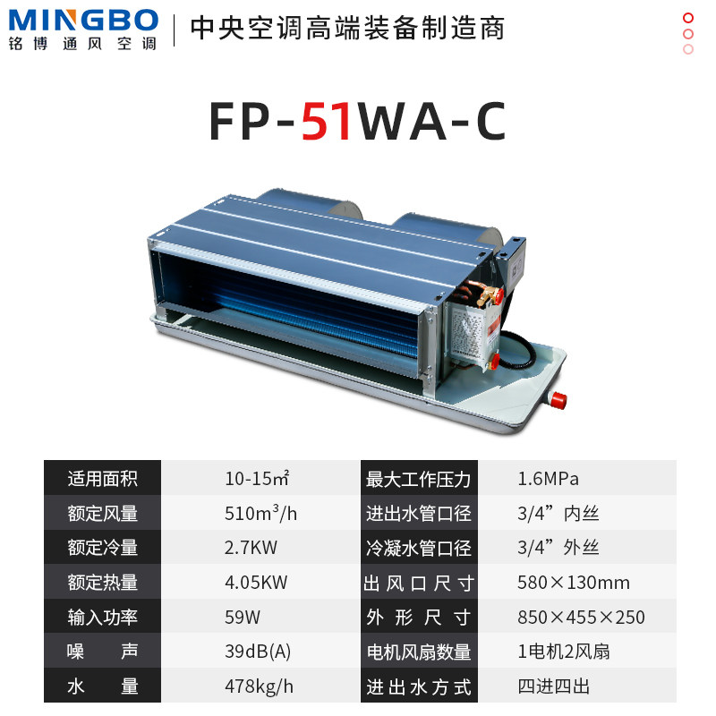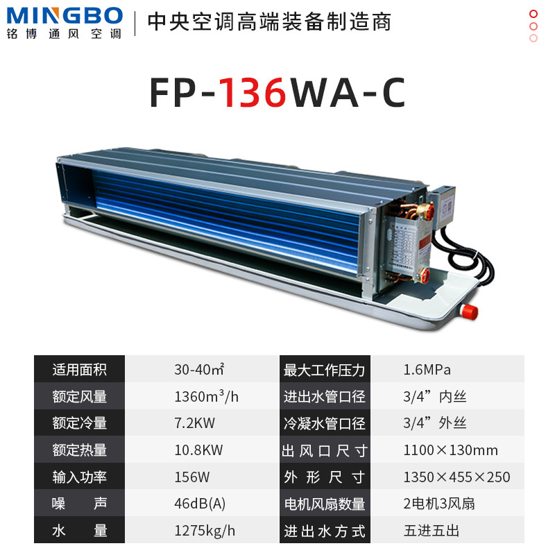 Минбо круглый темный приводной труба C Модель FP-W Центральная кондиционера, холодная тепловая вода Кондиционирование воздуха.