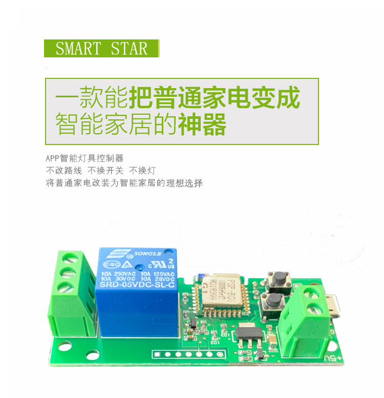 Модуль управления Wi -типом дурака, без программирования, просто загрузите приложение, ссылку WiFi для управления собственным облаком.Пока модуль связывает Wi -Fi, телефон можно контролировать в любом месте страны.