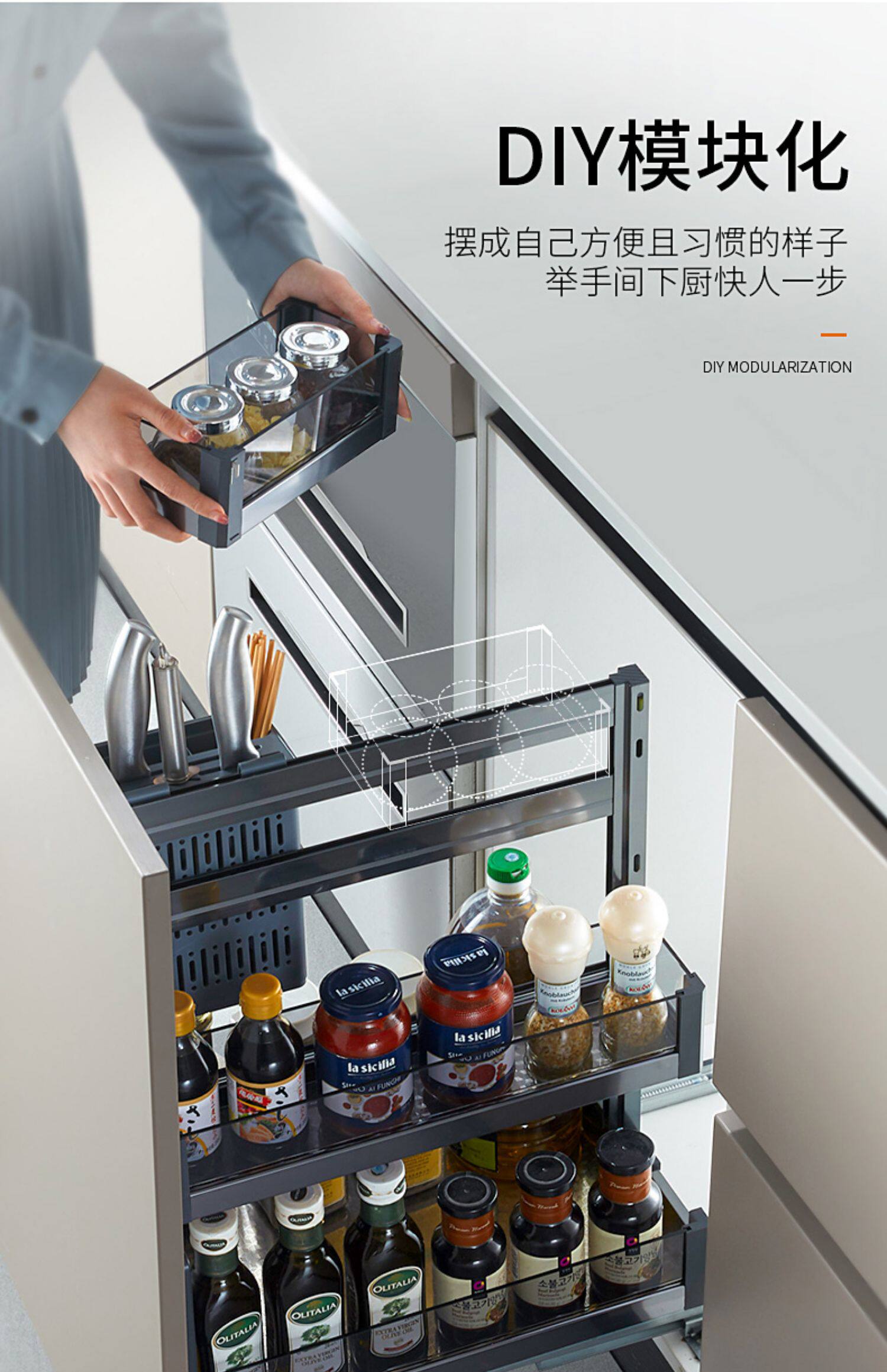 Карба кухонный шкаф приправы баскетбол 304 из нержавеющей стали двойной слой ящик для стиля синий узкий кухонный шкаф внутри корзины с префиксом